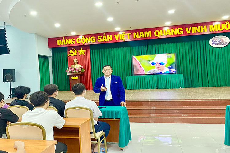 Diễn giả – Tiến sĩ Lê Thái Bình trình bày chuyên đề trang bị kỹ năng mềm và phương pháp học tập hiệu quả cho học sinh