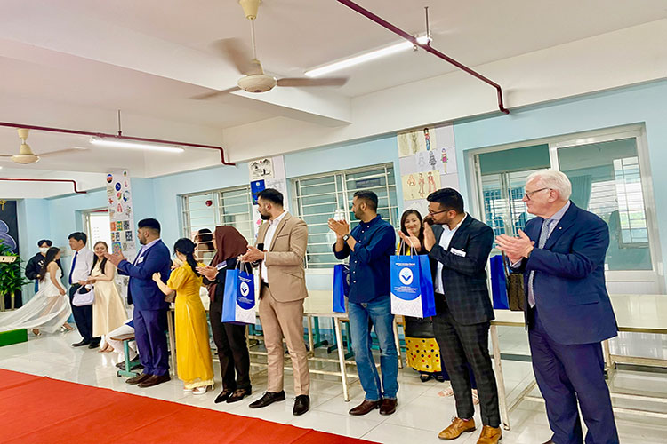 Thay cho lời cảm ơn chân thành nhất, ThS.Nguyễn Ngọc Hiển – Hiệu trưởng nhà trường đã gửi tặng món quà kỷ niệm đến Ông Andrew John Robb AO và Bà Nikki Salomon với mong muốn sự hợp tác bền vững vì sự nghiệp giáo dục và cơ hội việc làm cho sinh viên.