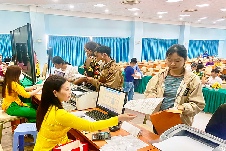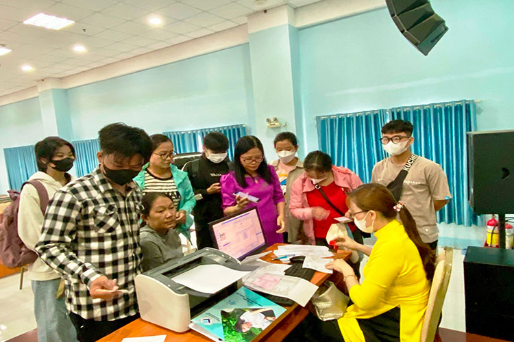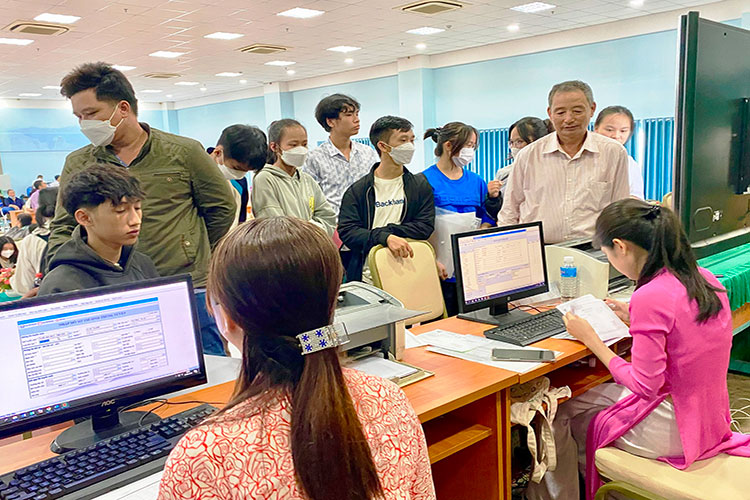 Các em tân sinh viên được hướng dẫn làm thủ tục nhập học