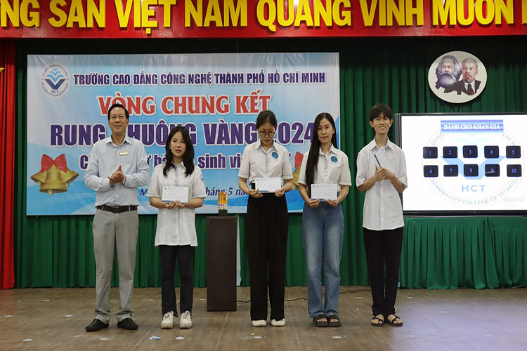 Kết quả có 05 học sinh, sinh viên được trao giải, trong đó có 01 giải “Rung chuông vàng” thuộc về sinh viên Trương Ngọc Bảo Trân, lớp TC22CT01 khoa Ngoại ngữ -Tin học; 04 giải khuyến khích thuộc về sinh viên Nguyễn Cảnh Nguyên, lớp CĐ23TT02 khoa Công nghệ may- thời trang, sinh viên Nguyễn Thị Thanh Phượng, lớp CĐ22QK01, sinh viên Nguyễn Thị Thủy Tiên, lớp CĐ23KT01 khoa Kinh tế – Du lịch và sinh viên Hoàng Mai Hương, lớp CĐ23TA01 khoa Ngoại ngữ – Tin học.