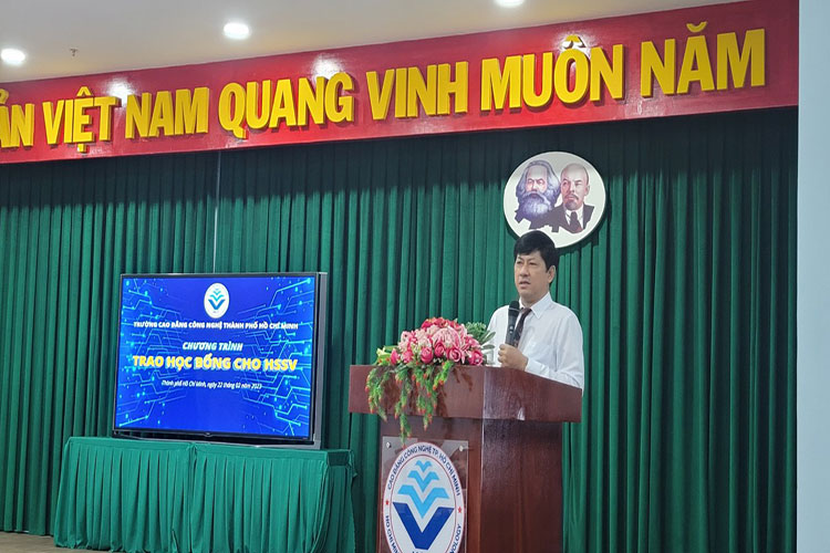 Nhằm hỗ trợ kinh phí học tập, động viên tinh thần, tạo điều kiện cho học sinh, sinh viên nỗ lực hơn nữa trong học tập, sáng ngày 22 tháng 02 năm 2023, trường Cao đẳng Công nghệ TP.HCM tổ chức trao học bổng cho 84 học sinh, sinh viên đạt thành tích tốt trong học tập và rèn luyện với tổng số tiền là 304.750.000 đồng.
