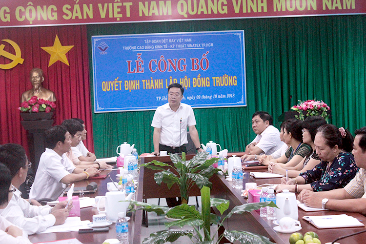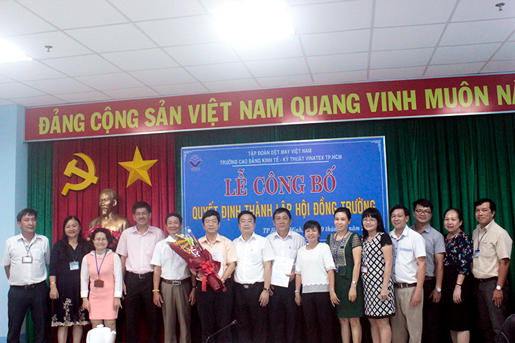 Được sự chấp thuận của Tập đoàn Dệt May Việt Nam, chiều ngày 09/10/2018, trường Cao đẳng Kinh tế – Kỹ thuật Vinatex TP. Hồ Chí Minh trang trọng tổ chức lễ công bố Quyết định thành lập Hội đồng trường và quyết định bổ nhiệm Chủ tịch Hội đồng nhà trường, nhiệm kỳ 2018-2023.