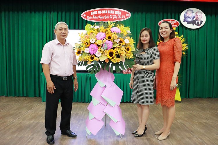 Phát biểu chúc mừng tại buổi lễ, thầy Hồ Ngọc Tiến – Bí thư Đảng ủy, Hiệu trưởng Nhà trường đã ghi nhận, biểu dương và đánh giá cao những đóng góp của chị em CBVC trong Nhà trường. Thầy cho biết, số lao động nữ chiếm chủ yếu trong lực lượng lao động của Nhà trường, là lực lượng phải nỗ lực rất nhiều và đóng góp chính cho sự phát triển Nhà trường trong thời gian qua, các chị em CBVC phải nỗ lực rất nhiều để hoàn thành các công việc mà họ đảm nhận.