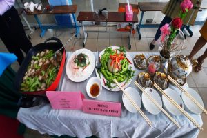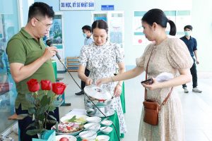 Cũng trong buổi sáng 08/03/2022 Công đoàn Trường tổ chức hội thi Ẩm thực 3 miền với 10 tổ Công đoàn tham gia thật sôi nổi và hào hứng. Ban Tổ chức, Ban giám khảo ghi nhận các tác phẩm trình bày sáng tạo, công phu mang tính nghệ thuật cao, tạo ra được sự bất ngờ lớn cho người xem.