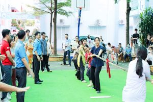 Hội thao diễn ra trong không khí vui tươi, sôi nổi với sự tham gia nhiệt tình của các thành viên trong các tổ công đoàn trong toàn trường. Hoạt động thể thao có 52 lượt VĐV tham gia trong các trò chơi đua xe đạp chậm, nhảy bao bố và kéo co.