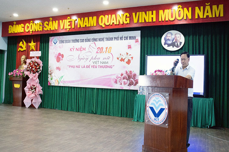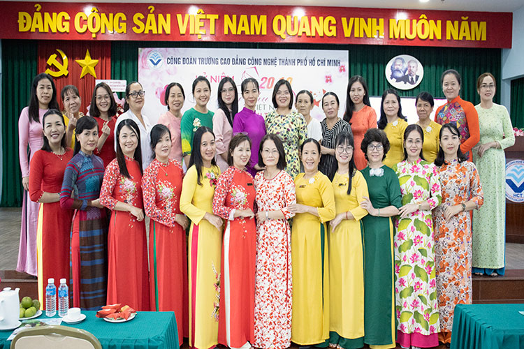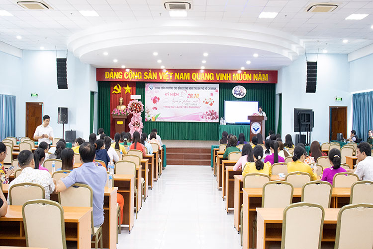 Hòa chung không khí phấn khởi, hân hoan và tự hào của Phụ nữ cả nước trong ngày Lễ kỷ niệm 93 năm ngày thành lập Hội Liên hiệp Phụ nữ Việt Nam (20/10/1930 – 20/10/2023). Sáng ngày 20/10/2023 tại hội trường A, Công đoàn trường Cao đẳng Công nghệ TP. Hồ Chí Minh tổ chức Kỷ niệm Ngày Phụ nữ Việt Nam trong không khí vui tươi, sôi nổi với nhiều tiết mục văn nghệ và chương trình đố vui trúng thưởng đã được quý thầy/ cô tham dự chương trình nhiệt tình tham gia, qua đó thắt chặt thêm tình đoàn kết, gắn bó giữa CBVC đang công tác tại Trường.
