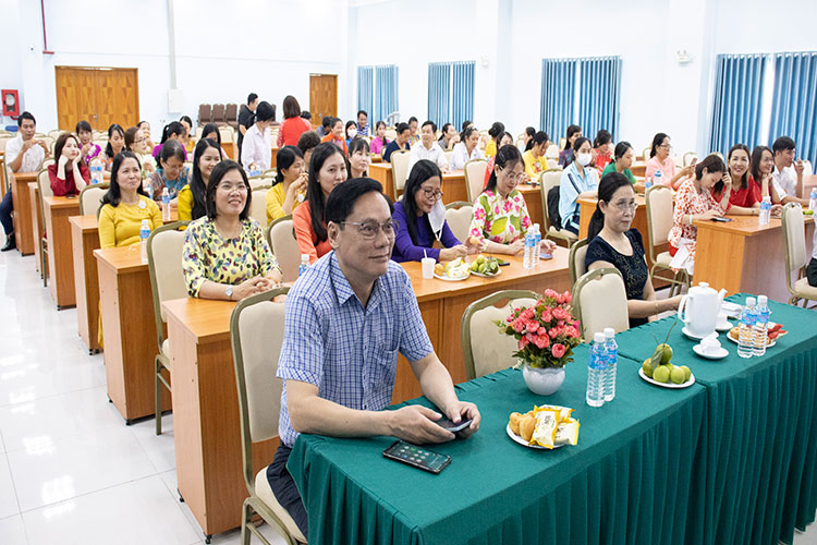 Đến dự Kỷ niệm Ngày Phụ nữ Việt Nam 20/10 có Thầy Nguyễn Ngọc Hiển – Bí thư Đảng ủy – Hiệu trưởng Nhà trường, Cô Phan Thị Hải Vân – UVBCH Đảng ủy – Phó Hiệu trưởng Nhà trường, đồng chí Bùi Ngọc Bốn – Chủ tịch Công đoàn, cùng quý thầy, cô là cán bộ quản lý phòng, khoa, trung tâm và CBVC nữ.