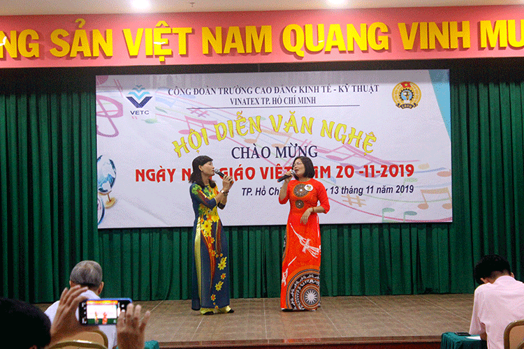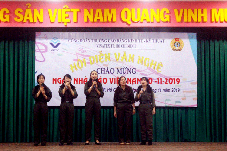 Được sự đồng ý của Đảng ủy, Ban Giám hiệu Nhà trường, ngày 13/11/2019 Công đoàn Trường Cao đẳng Kinh tế – Kỹ thuật Vinatex Thành phố Hồ Chí Minh đã tổ chức Hội diễn văn nghệ chào mừng ngày Nhà giáo Việt Nam 20/11. Hội diễn văn nghệ là dịp để tăng cường mối quan hệ đoàn kết, gắn bó mật thiết trong giảng dạy, công tác; khơi dậy truyền thống tốt đẹp của đội ngũ nhà giáo, tạo ra không khí chan hòa, vui tươi phấn khởi; tạo nên sức bật mới, sinh khí mới trong công tác của cán bộ, giảng viên, công nhân viên trong toàn Trường. Trong Hội diễn văn nghệ, khán giả đã được xem 14 tiết mục đến từ 10 tổ Công đoàn với hơn 90 lượt cán bộ, giảng viên, công nhân viên tham gia biểu diễn; Ban Tổ chức, Ban giám khảo ghi nhận các tiết mục được dàn dựng công phu, sáng tạo mang tính nghệ thuật cao, tạo ra sự bất ngờ lớn cho người xem.