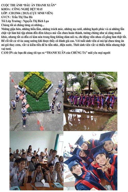 Và 5 giải Khuyến khích lần lượt thuộc về lớp CĐ17I1, CĐ17M9, CĐ17M3, CĐ18CM07, CĐ18CM08. Song song đó Cựu Sinh viên cũng gửi bài Giao lưu cùng các em lần lượt.