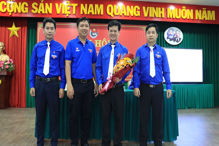 Đồng chí Đào Duy Khánh – Phó bí thư Đoàn Thanh niên Tập đoàn Dệt may Việt Nam tặng hoa chúc mừng Ban Chấp hành nhiệm kỳ 2017 – 2022