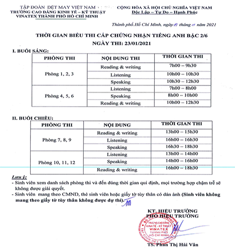 Danh sách dự thi Listening & Speaking