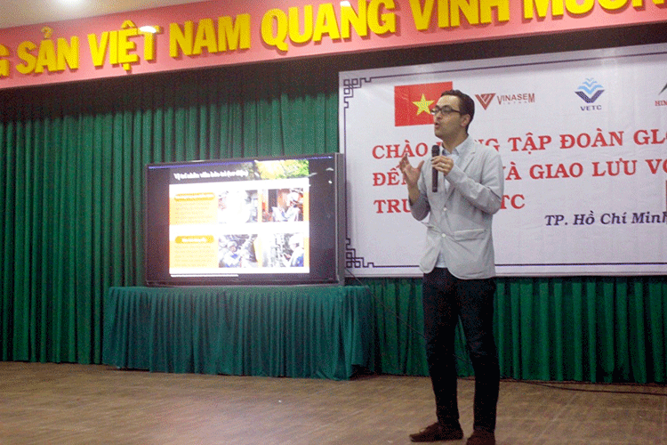 Tiếp theo, Ông Takigawa Jinken, Tổng giám đốc Tập đoàn Global Touch giới thiệu về công ty, các điều kiện tuyển dụng, quy trình tuyển dụng, nhu cầu tuyển dụng hàng năm của doanh nghiệp Nhật Bản và trả lời các câu hỏi từ phía HSSV Nhà trường.