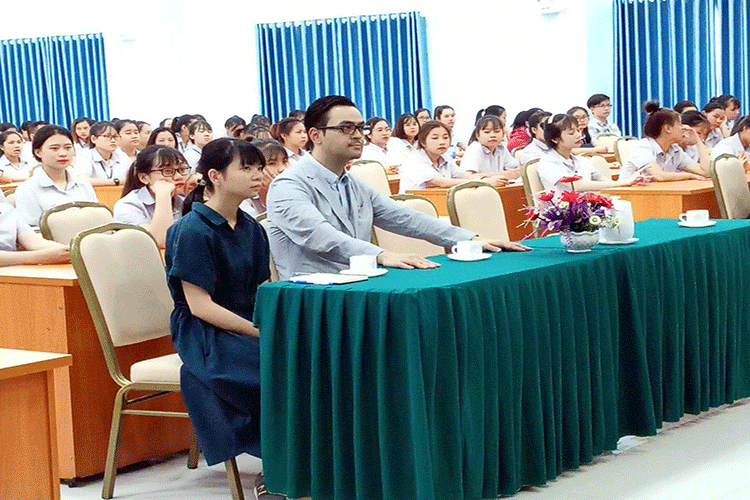 Mở đầu buổi giao lưu TS. Hồ Ngọc Tiến, Hiệu trưởng Nhà trường cho biết trong xu thế hội nhập toàn cầu, việc phát triển kết nối giữa Nhà trường không chỉ với các doanh nghiệp trong nước mà còn các doanh nghiệp ngoài nước; Nhà trường luôn chú trọng tạo điều kiện cho HSSV có nhiều cơ hội nghề nghiệp tại các nước phát triển như Nhật Bản, Hàn Quốc,…, buổi giao lưu hôm nay cũng là một trong những buổi gặp gỡ trực tiếp giữa doanh nghiệp Nhật Bản và HSSV nhằm giúp các em có thêm thông tin và có thời gian để chuẩn bị hành trang định hướng tương lai nghề nghiệp tại Nhật Bản.