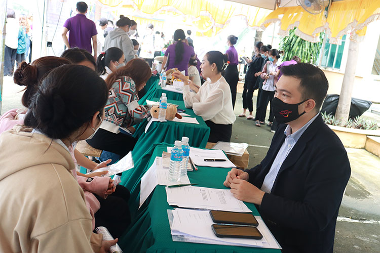 Trong buổi lễ, Lãnh đạo nhà trường đã trao tặng hoa cho các doanh nghiệp đến tham dự và tuyển dụng trực tiếp tại trường. Năm nay, Trường đã thu hút nhiều doanh nghiệp ở nhiều lĩnh vực như: May mặc, Cơ khí, Tài chính Ngân hàng, Kế toán – Kiểm toán, Dịch vụ nhà hàng – khách sạn, Du lịch, Giáo dục, Bất động sản, xuất khẩu lao động tham gia phỏng vấn trực tiếp. Gần 800 sinh viên tốt nghiệp năm 2022 đã tham gia dự tuyển trực tiếp Ngày hội việc làm năm 2022. Trong ngày tuyển dụng, đã có gần 600 sinh viên tốt nghiệp đã được các doanh nghiệp phòng vấn tuyển dụng, đây là cơ hội để các em có việc làm tốt sau khi tốt nghiệp.
