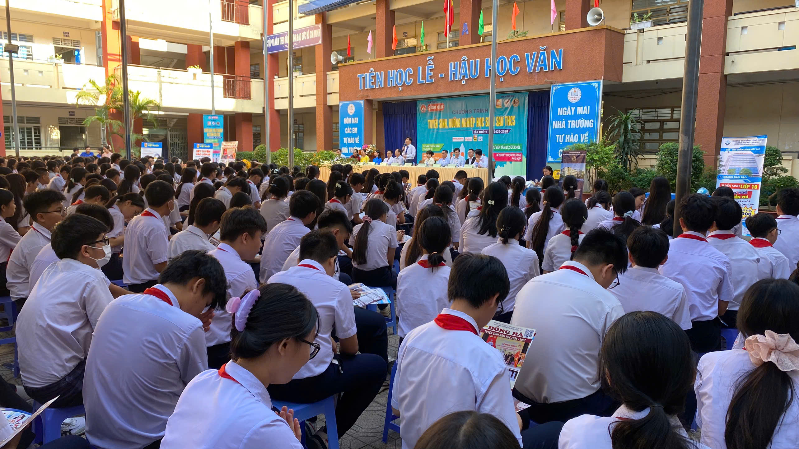 Bên cạnh đó, chương trình còn mang đến những chia sẻ thực tế về môi trường học tập tại Trường Cao đẳng Công nghệ TP.HCM, cơ hội thực hành, thực tập tại doanh nghiệp và lộ trình liên thông lên đại học. Các em học sinh cũng được giải đáp trực tiếp những thắc mắc liên quan đến ngành học, điều kiện tuyển sinh, học phí và cơ hội việc làm sau khi ra trường.