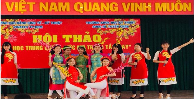Ngày 18/1/2019 Trường Cao đẳng Kinh tế – Kỹ thuật Vinatex TP. Hồ Chí Minh phối hợp với Trường Khoa học kỹ thuật Song Hỉ, Tuyền Châu, Trung Quốc tổ chức Hội thảo “Du học Trung Quốc – Ước mơ trong tầm tay” dành cho sinh viên ngành ngành Công nghệ may, Thiết kế thời trang, Quản trị kinh doanh (chuyên ngành Quản trị sản xuất dệt may) tại Trường.
