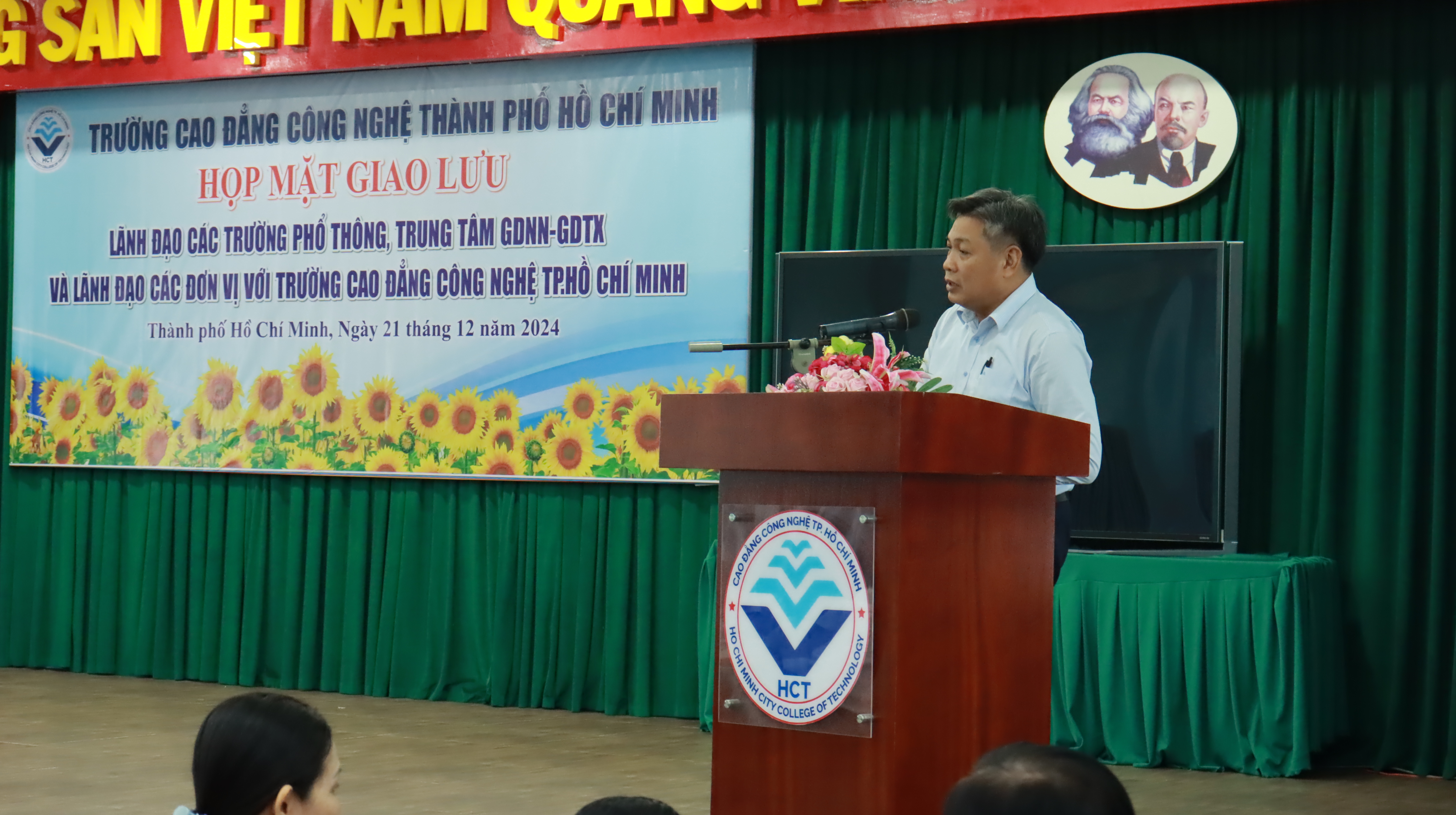 Ngày 21/12/2024 Trường Cao đẳng Công nghệ TP Hồ Chí Minh đã tổ chức buổi họp mặt, giao lưu giữa Nhà trường với các trường phổ thông – Trung tâm giáo dục nghề nghiệp – Giáo dục thường xuyên và lãnh đạo các đơn vị liên kết.