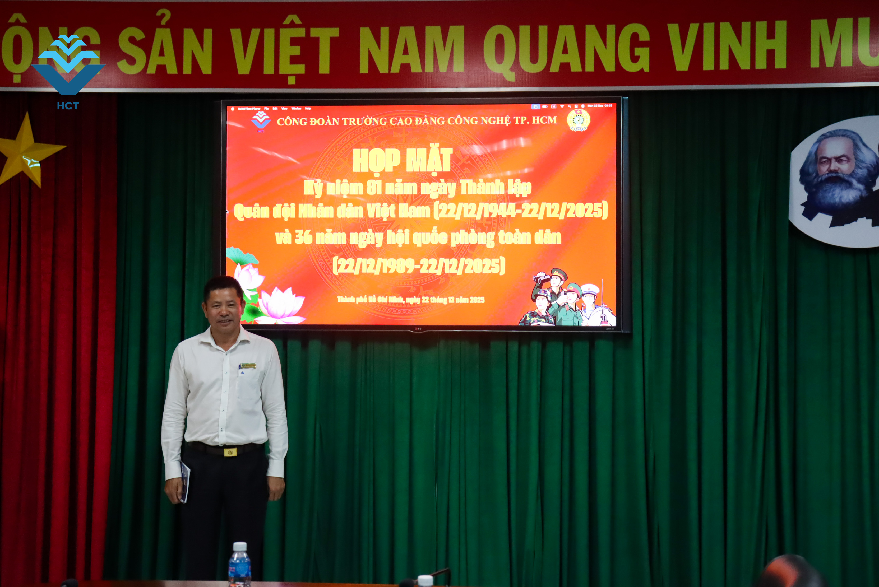 Sáng nay, Công đoàn Trường Cao đẳng Công nghệ TP.HCM đã long trọng tổ chức buổi Họp mặt kỷ niệm 81 năm Ngày thành lập Quân đội Nhân dân Việt Nam và 36 năm Ngày hội Quốc phòng toàn dân, trong không khí trang nghiêm, ấm áp và đầy tự hào.