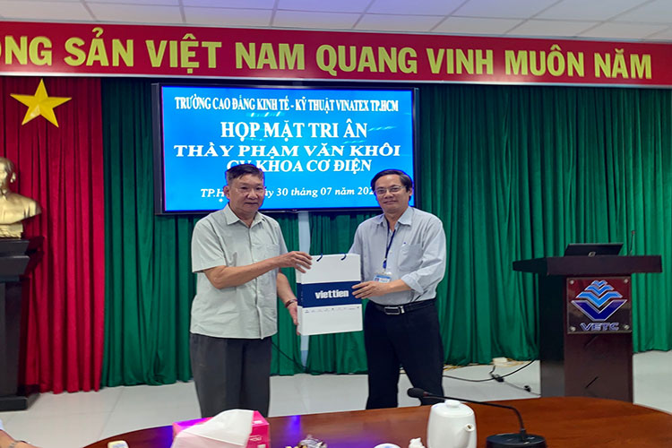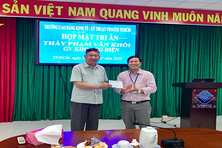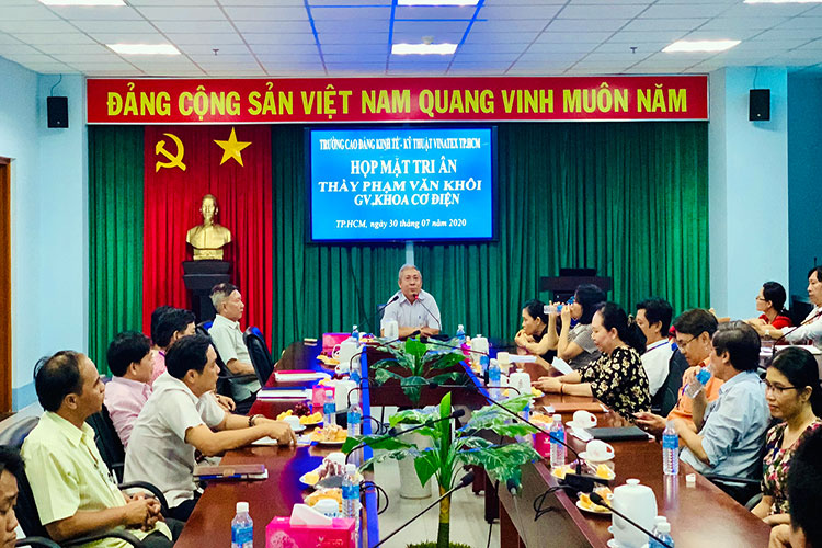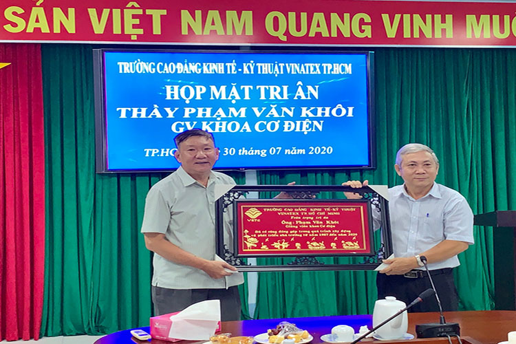 Ngày 30/07/2020, Trường Cao đẳng Kinh tế – Kỹ thuật Vinatex Thành phố Hồ Chí Minh đã tổ chức gặp mặt và tri ân thầy Phạm Văn Khôi – giảng viên khoa Cơ điện. Đây là hoạt động nhằm để thể hiện sự quan tâm của Đảng ủy, Ban giám hiệu đối với các cán bộ, viên chức trong sự nghiệp phát triển chung của Trường. Buổi gặp mặt cũng là dịp để mọi người cùng nhau ôn lại những kỷ niệm khi còn công tác, chia sẻ những kỳ vọng với những thế hệ tiếp nối.