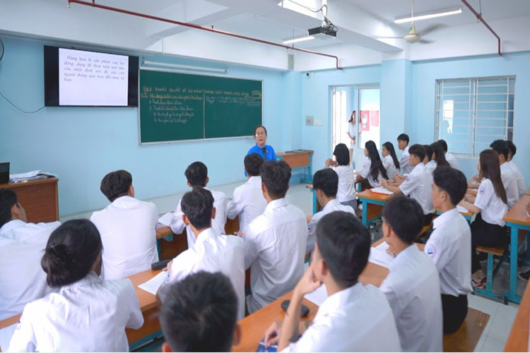 Tiết giảng lý thuyết được giảng viên ứng dụng bài giảng điện tử để minh hoạ.