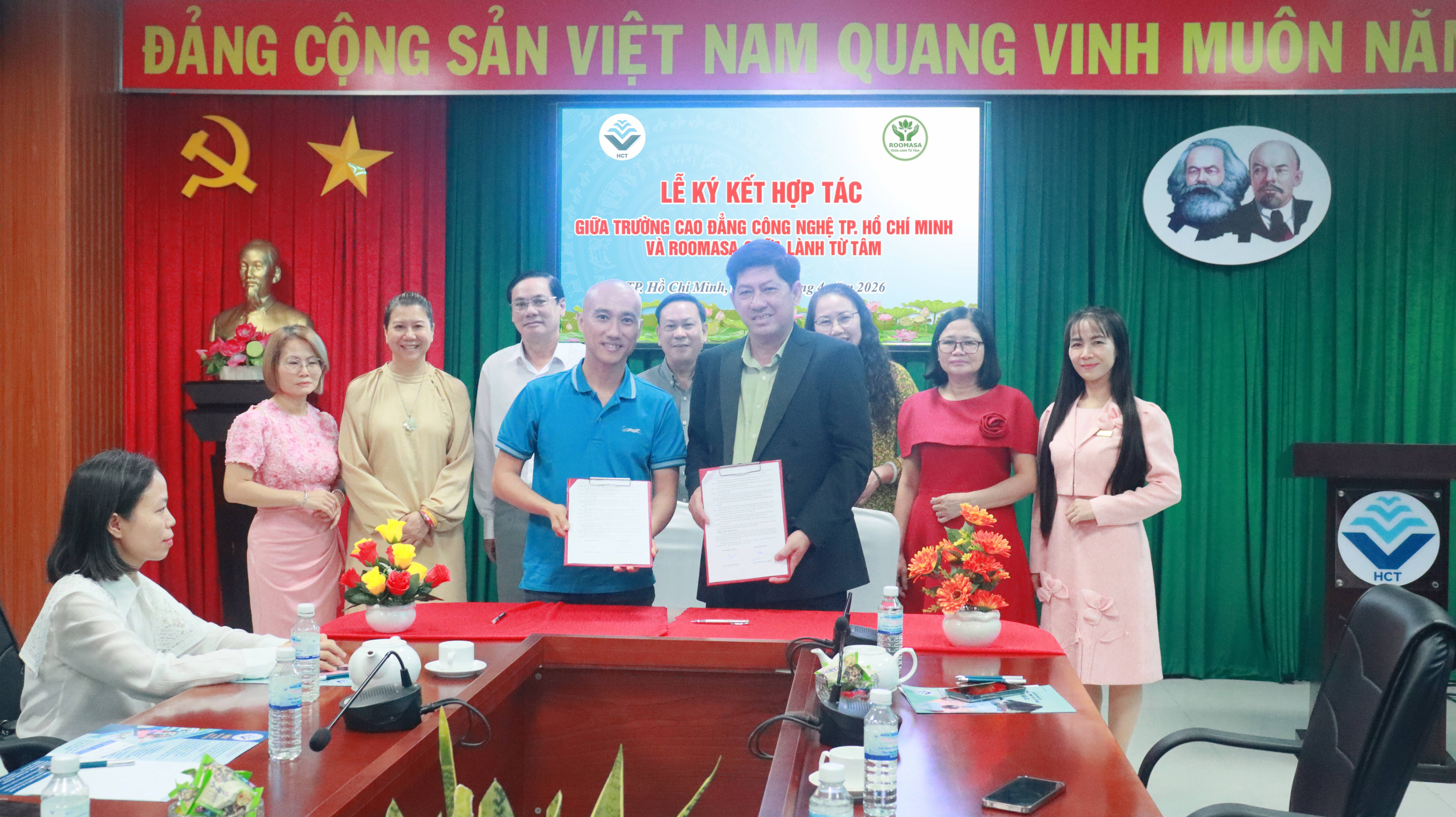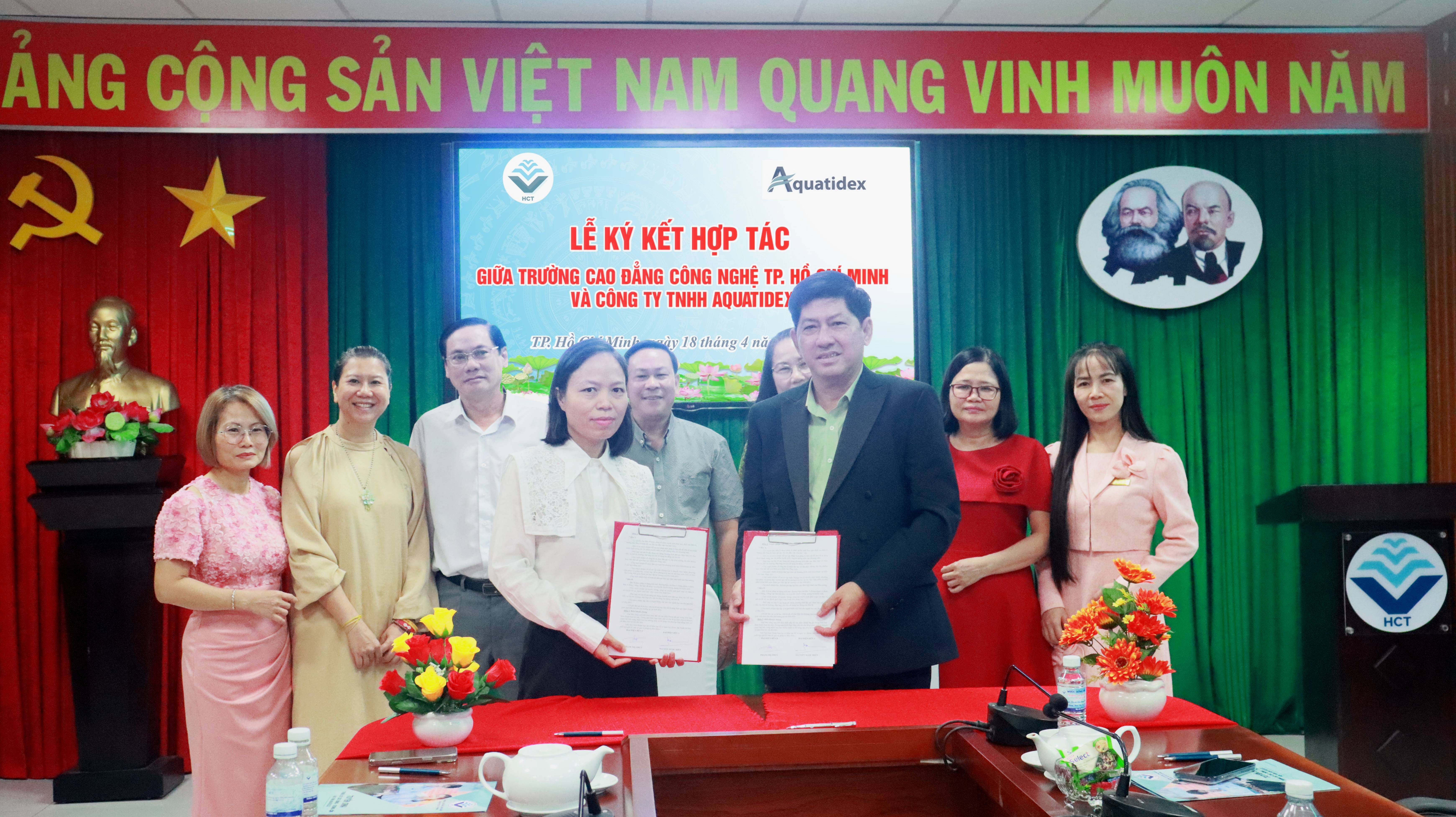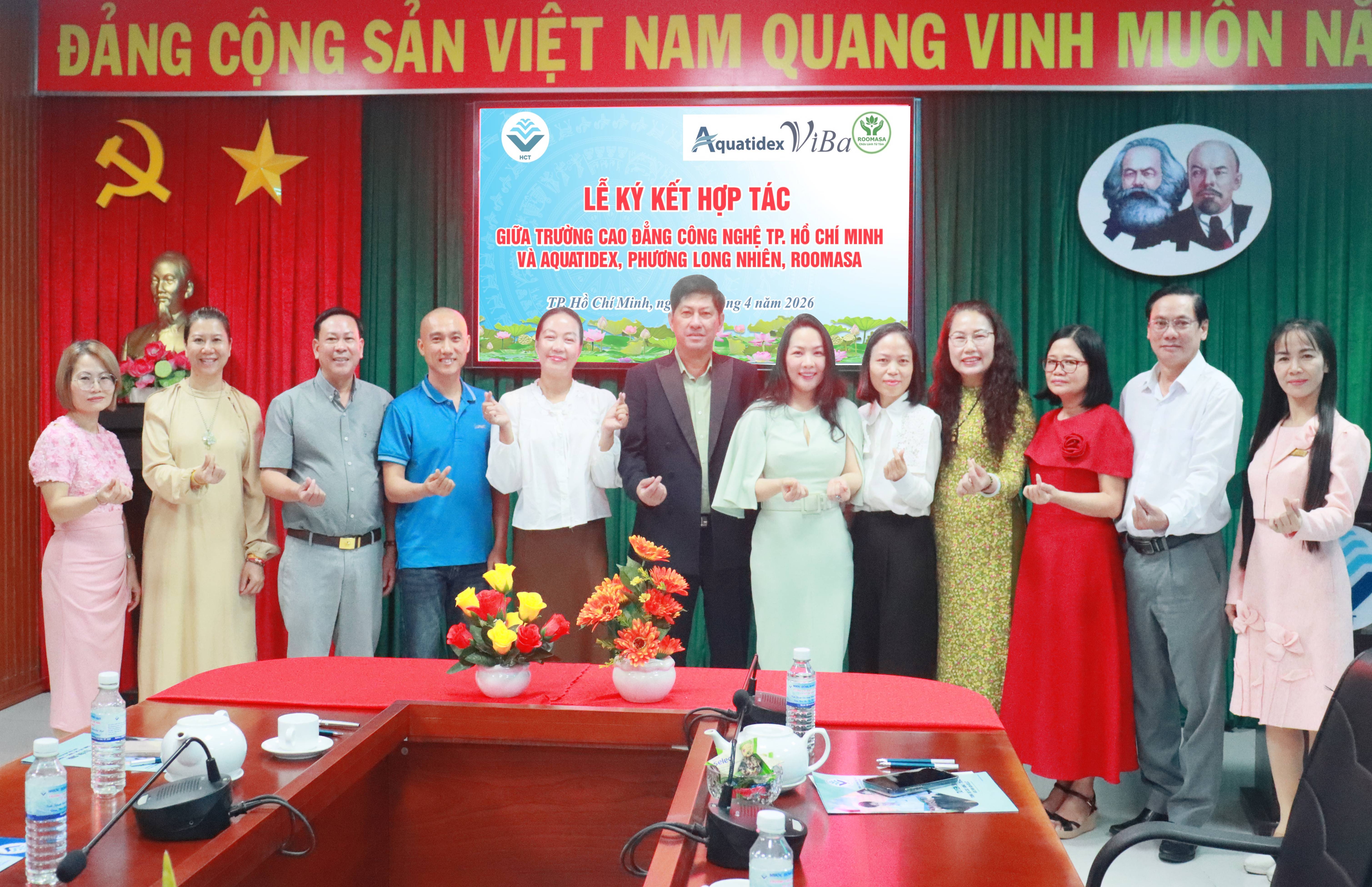 Sáng ngày hôm nay, Trường Cao đẳng Công nghệ TP.HCM đã long trọng tổ chức lễ ký kết thỏa thuận hợp tác với các doanh nghiệp gồm: Công ty TNHH Aquatidex, Công ty TNHH Phương Long Nhiên và Roommasa. Đây là một trong những hoạt động trọng điểm nhằm tăng cường mối liên kết giữa nhà trường và doanh nghiệp, hướng đến mục tiêu nâng cao chất lượng đào tạo gắn liền với thực tiễn.