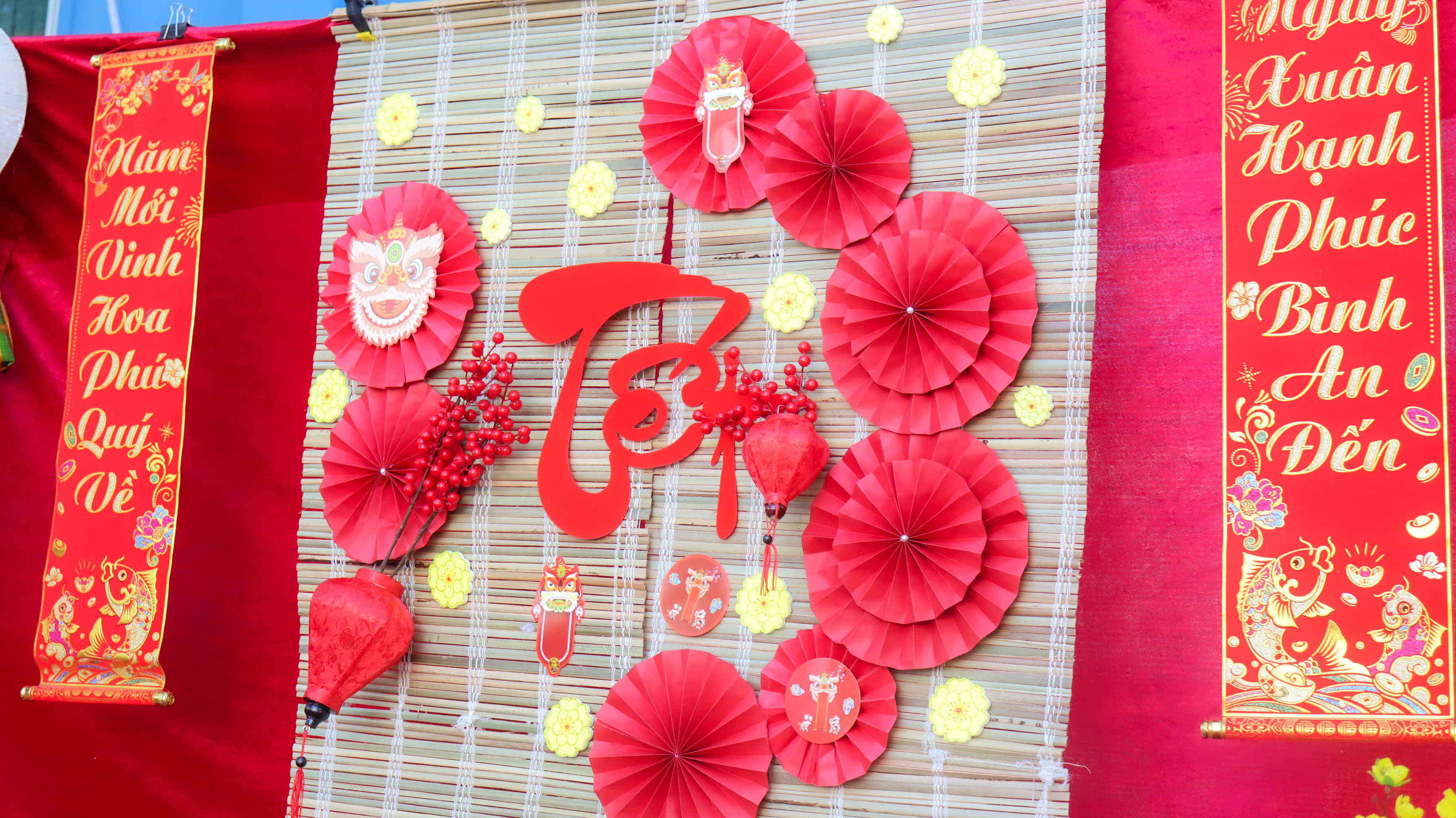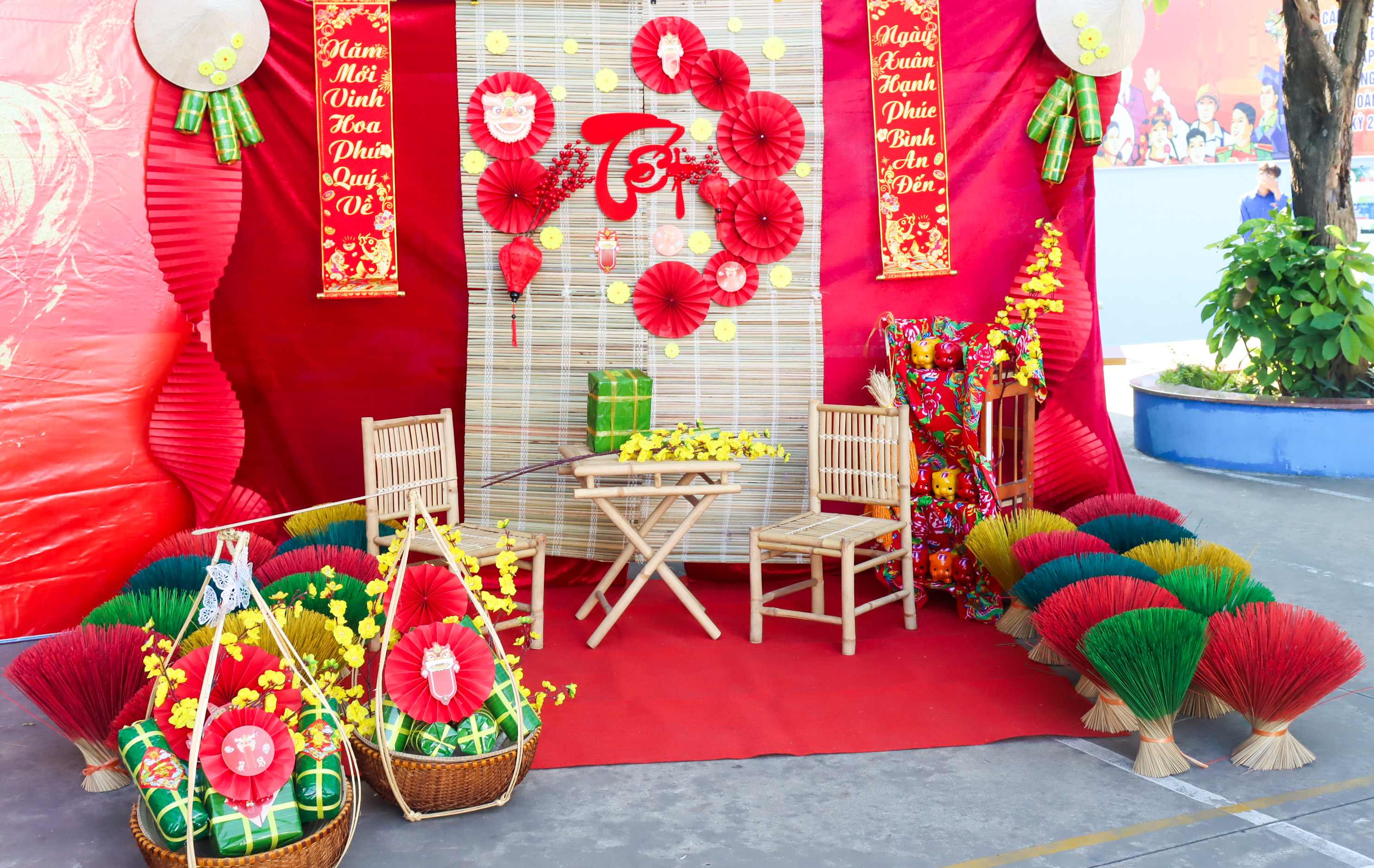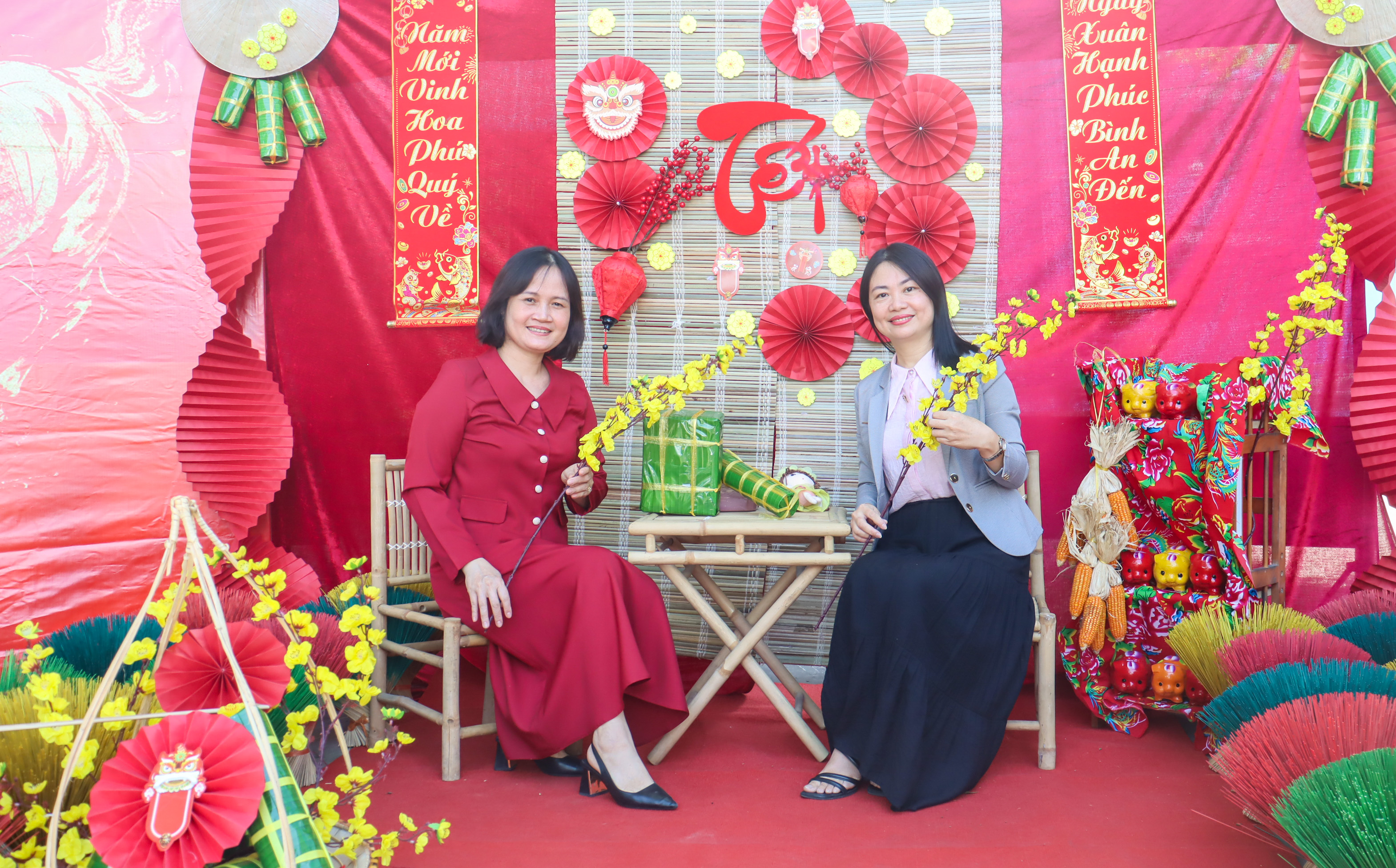 Điểm nhấn nổi bật của chương trình chính là khu vực tiểu cảnh Tết Bính Ngọ 2026 được setup chỉn chu, đậm chất xuân truyền thống. Không gian này nhanh chóng trở thành điểm check-in yêu thích của thầy cô và sinh viên, góp phần lan tỏa không khí Tết Nguyên đán đang đến rất gần.