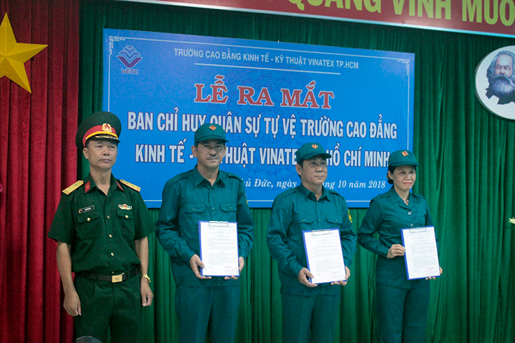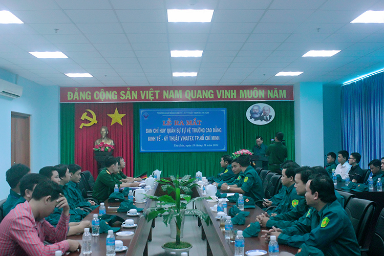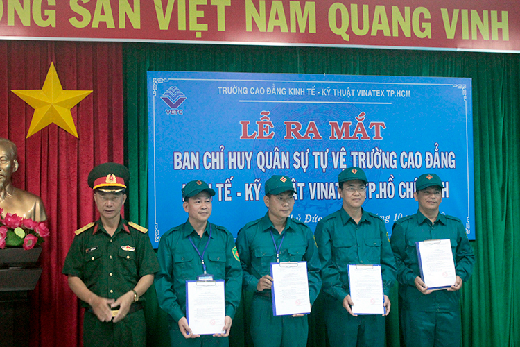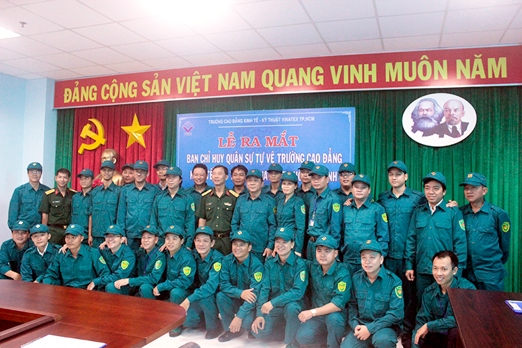Lễ công bố quyết định thành lập và ra mắt Ban chỉ huy quân sự và lực lượng tự vệ Trường Cao đẳng Kinh tế – Kỹ thuật Vinatex TP. Hồ Chí Minh diễn ra thành công tốt đẹp. Sự kiện này một lần nữa khẳng định vai trò, trách nhiệm của nhà trường trong sự nghiệp chung, sự nghiệp bảo vệ và xây dựng đất nước trong tình hình mới.