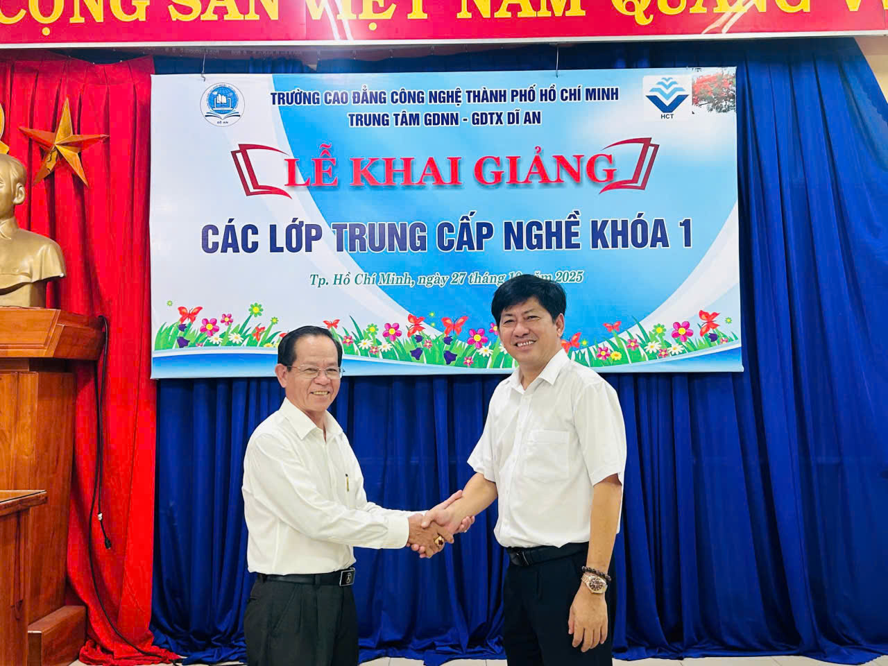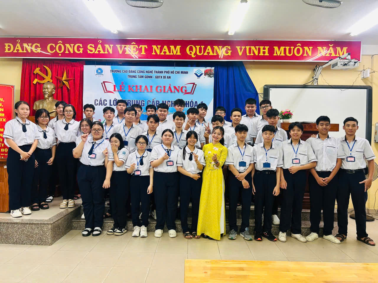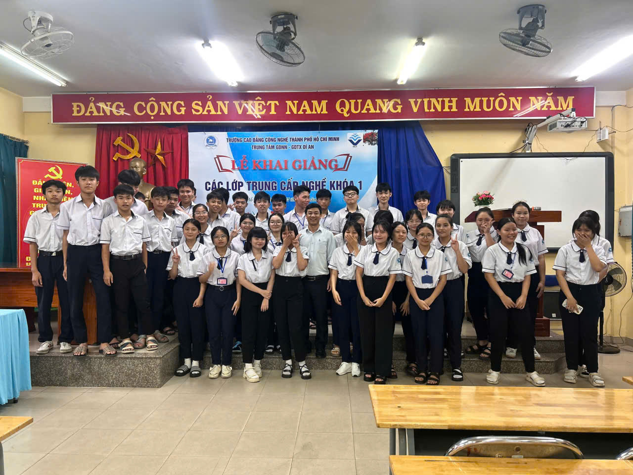 Ngày 27/10/2025 Trường Cao đẳng Công nghệ TP. Hồ Chí Minh phối hợp cùng Trung tâm GDNN– GDTX Dĩ An tổ chức Lễ khai giảng các lớp trung cấp khoá 1 năm học 2025 – 2026.