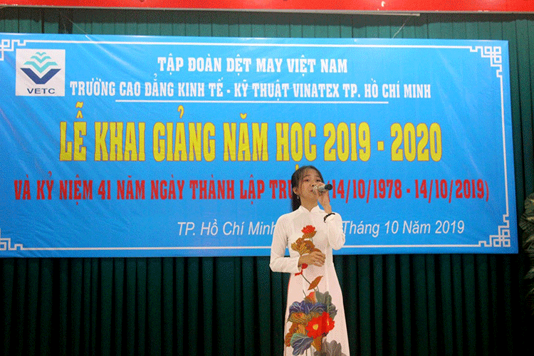 Sáng ngày 14/10/2019, trường Cao đẳng Kinh tế – Kỹ thuật Vinatex Thành phố Hồ Chí Minh đã long trọng tổ chức lễ khai giảng năm học 2019 – 2020 và kỷ niệm 41 năm ngày thành lập trường.