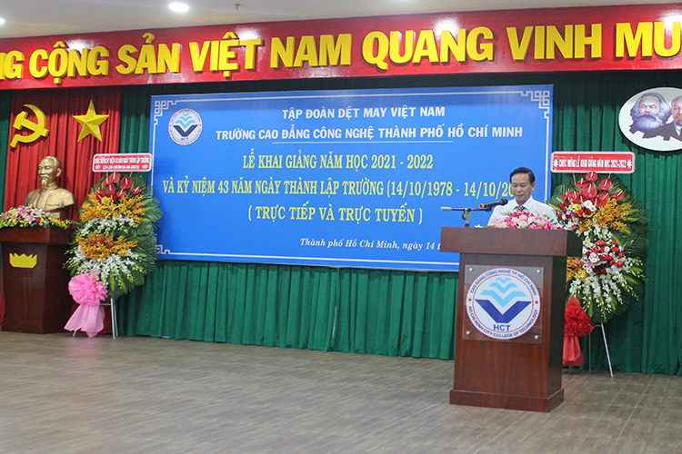 Ngày 14/10/2021 cũng là ngày kỷ niệm 43 năm nhà trường được thành lập, trải qua 43 năm xây dựng và phát triển, với tinh thần vượt khó và cống hiến của nhiều thế hệ cán bộ, giảng viên, công nhân viên qua các thời kỳ; cùng với sự quan tâm chỉ đạo sâu sát của các bộ, ngành và Tập đoàn Dệt May Việt Nam; với sự giúp đỡ của chính quyền địa phương, các doanh nghiệp và các đơn vị bạn, nhà trường đã vượt qua rất nhiều khó khăn và vươn lên trở thành nơi đào tạo nguồn nhân lực có trình độ cao, uy tín, chất lượng đáp ứng nhu cầu ngành dệt may Việt Nam và các ngành khác ở khu vực phía Nam.