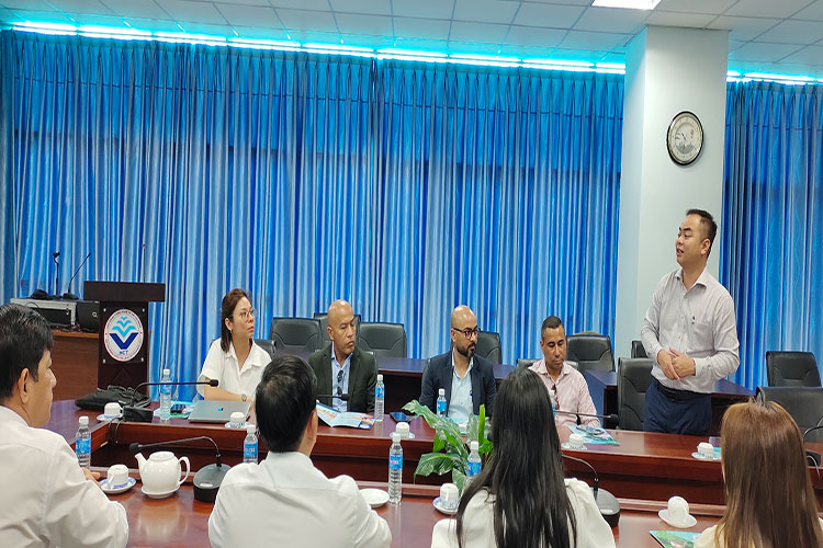 Thay mặt lãnh đạo nhà trường ThS.Nguyễn Ngọc Hiển vui mừng đón tiếp lãnh đạo Trường iLearn OZ đến thăm và làm việc, đồng thời giới thiệu về thế mạnh đào tạo cũng như bề dày truyền thống 45 năm của Nhà trường