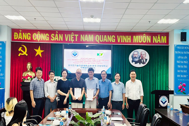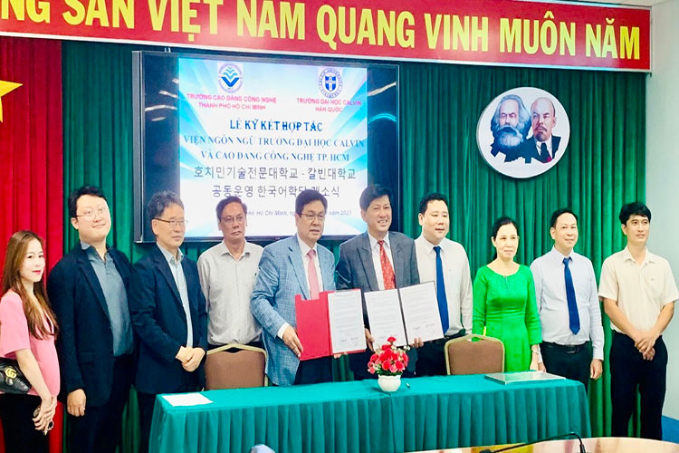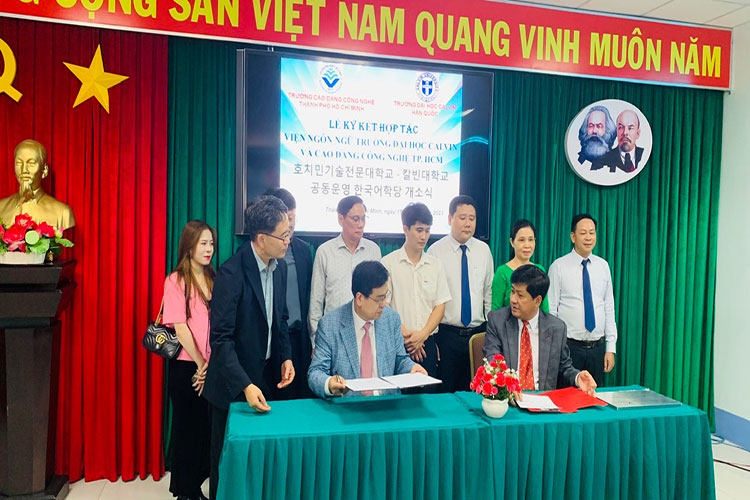 Ngày 15/08/2023, Trường Cao đẳng Công nghệ TP.HCM đã tổ chức Lễ ký kết hợp tác đào tạo Tiếng hàn và Tiếng Việt với Trường Đại học Calvin, Hàn Quốc
