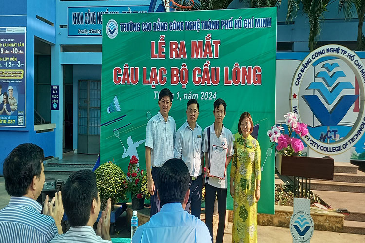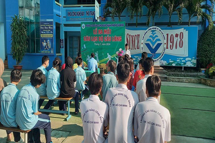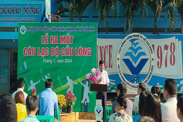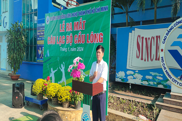 Nhằm tạo cho HSSV trong toàn trường một sân chơi thể thao lành mạnh, bổ ích ngày càng thu hút đông đảo hội viên tham gia và cổ vũ cho phong trào tập luyện thể dục thể thao nâng cao sức khỏe và tăng cường thể lực để học tập và rèn luyện, sáng ngày 23/01/2024 Trường Cao đẳng Công nghệ TP.HCM tổ chức lễ ra mắt câu lạc bộ cầu lông học sinh sinh viên. Đến dự với buổi lễ có Thầy Nguyễn Ngọc Hiển – Hiệu trưởng nhà trường, quý thầy cô là trưởng, phó các đơn vị phòng, khoa và đại diện học sinh, sinh viên.