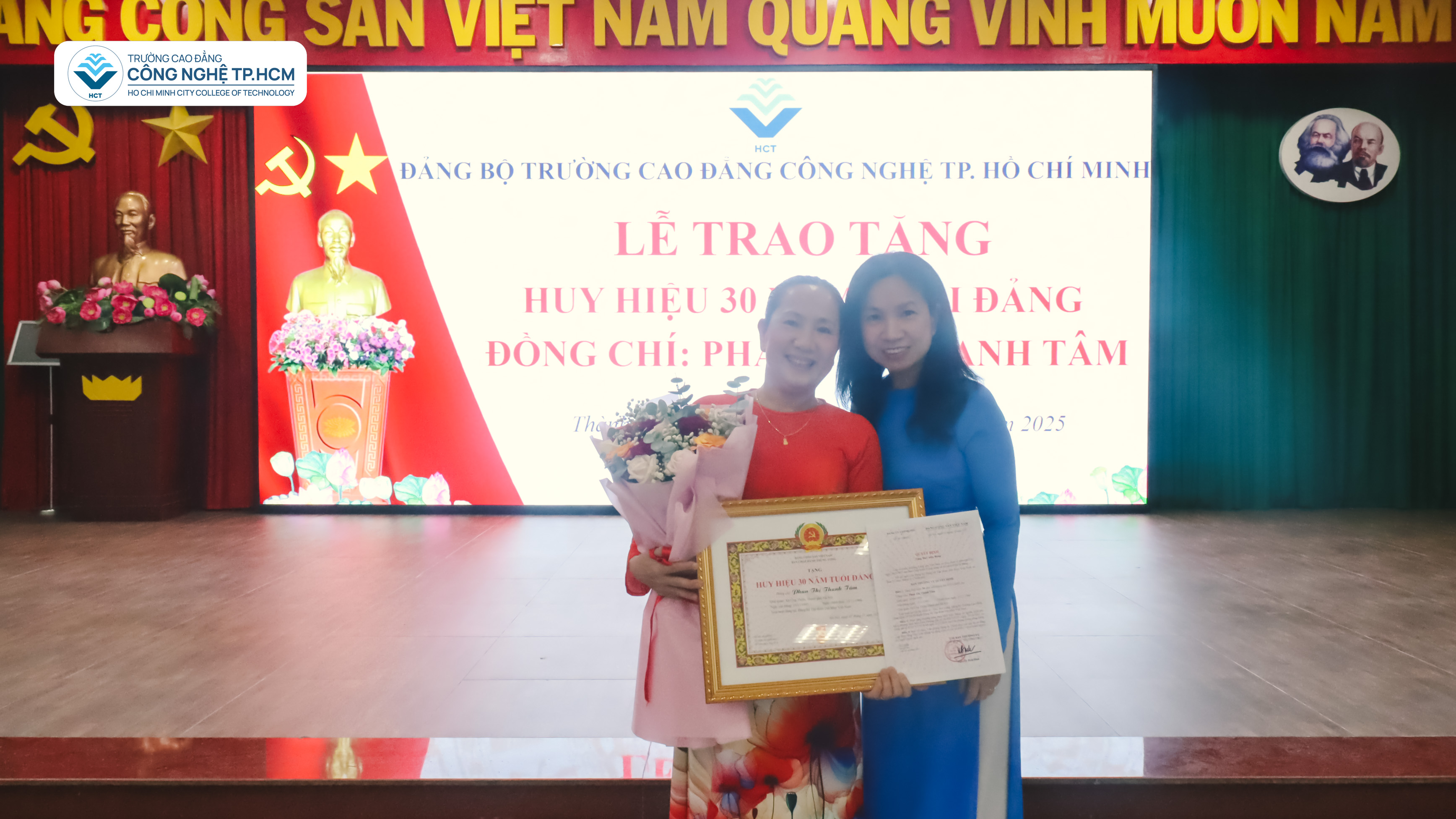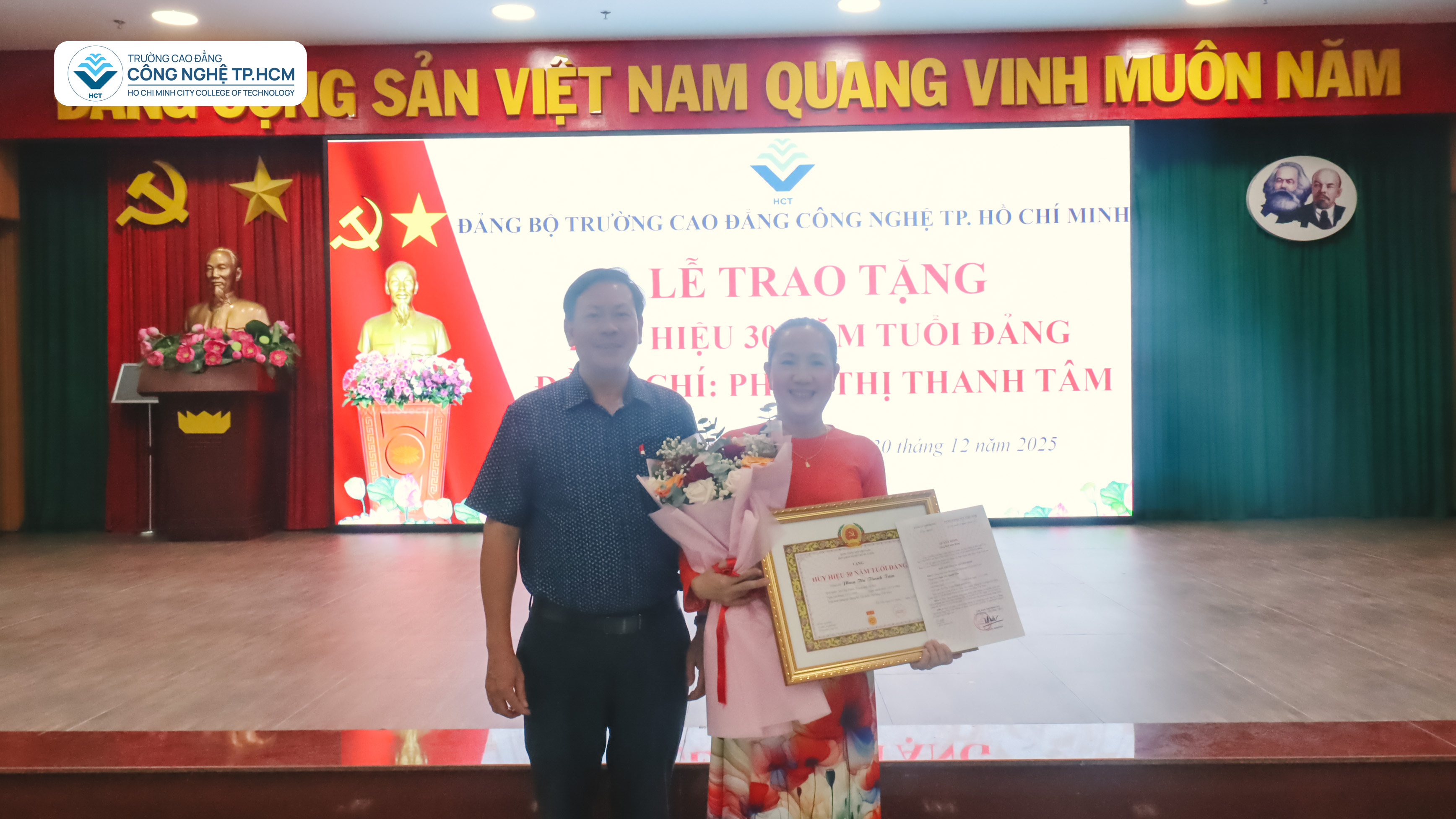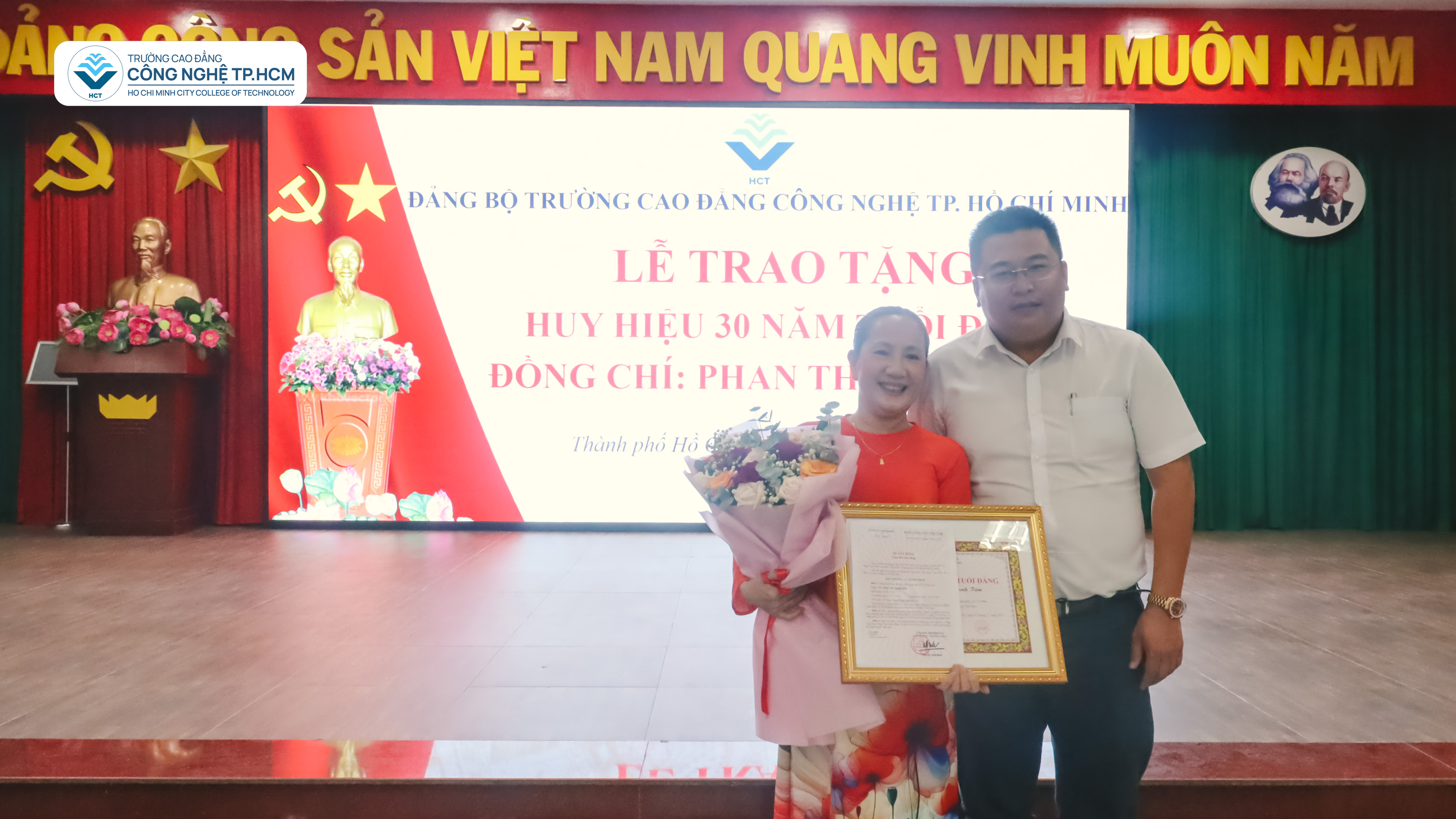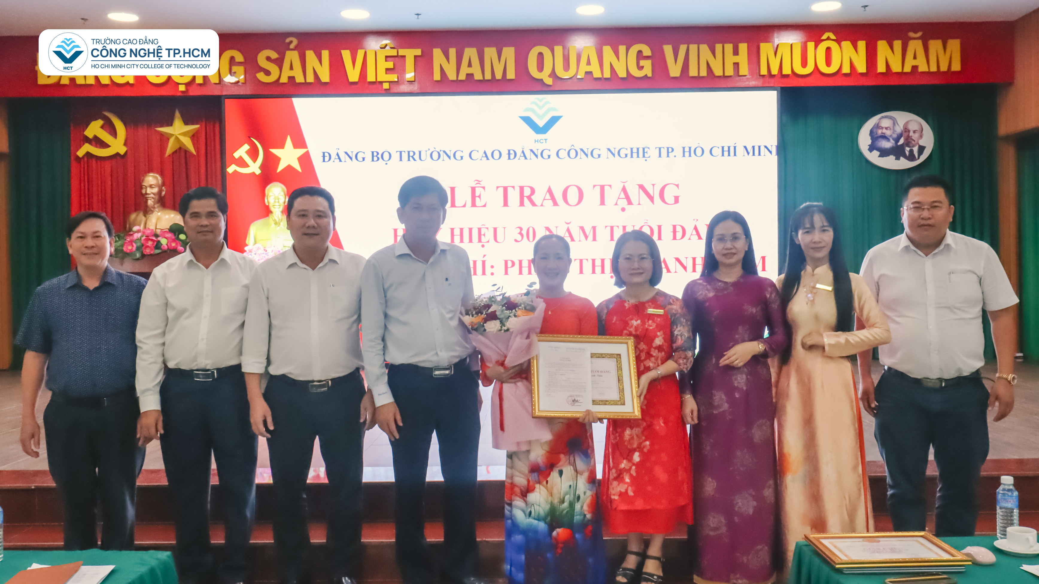 Huy hiệu Đảng là phần thưởng cao quý của Đảng, ghi nhận những tâm huyết, đóng góp, tinh thần trách nhiệm và sự cống hiến trong suốt quá trình công tác, phấn đấu và trưởng thành của các đảng viên. Việc được trao tặng Huy hiệu 30 năm tuổi Đảng không chỉ là niềm vinh dự, tự hào của cá nhân đảng viên, mà còn là niềm vui chung của toàn Đảng bộ Trường Cao đẳng Công nghệ TP. Hồ Chí Minh, đồng thời là nguồn động viên to lớn, góp phần bồi đắp niềm tin, hun đúc lý tưởng và lan tỏa tinh thần cống hiến trong toàn thể đảng viên.