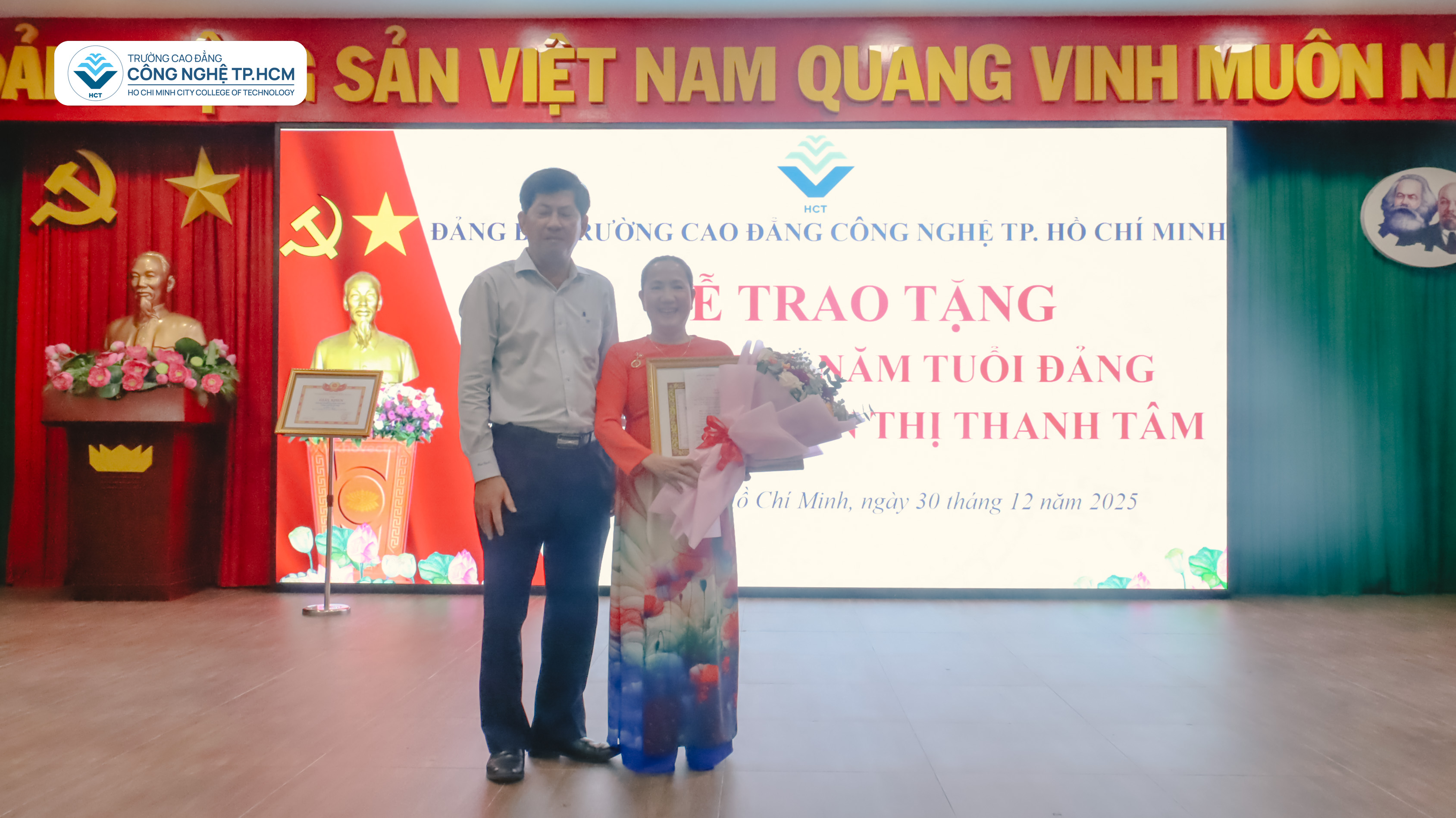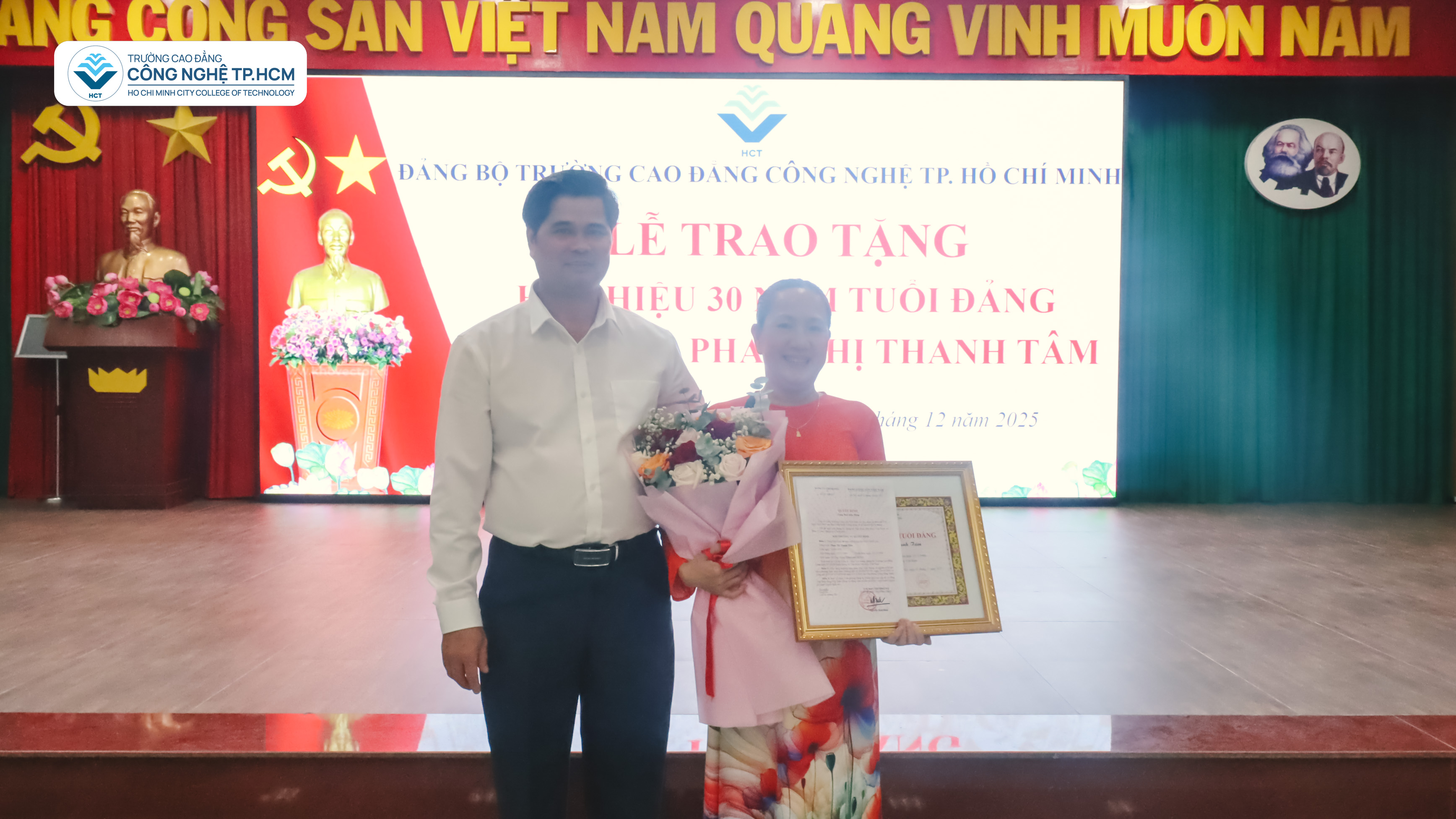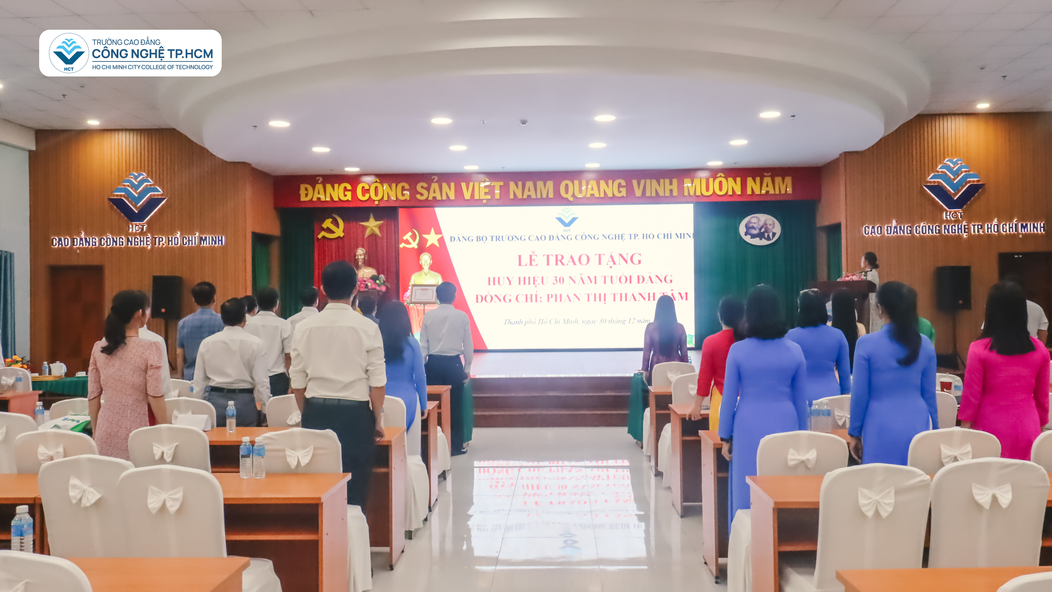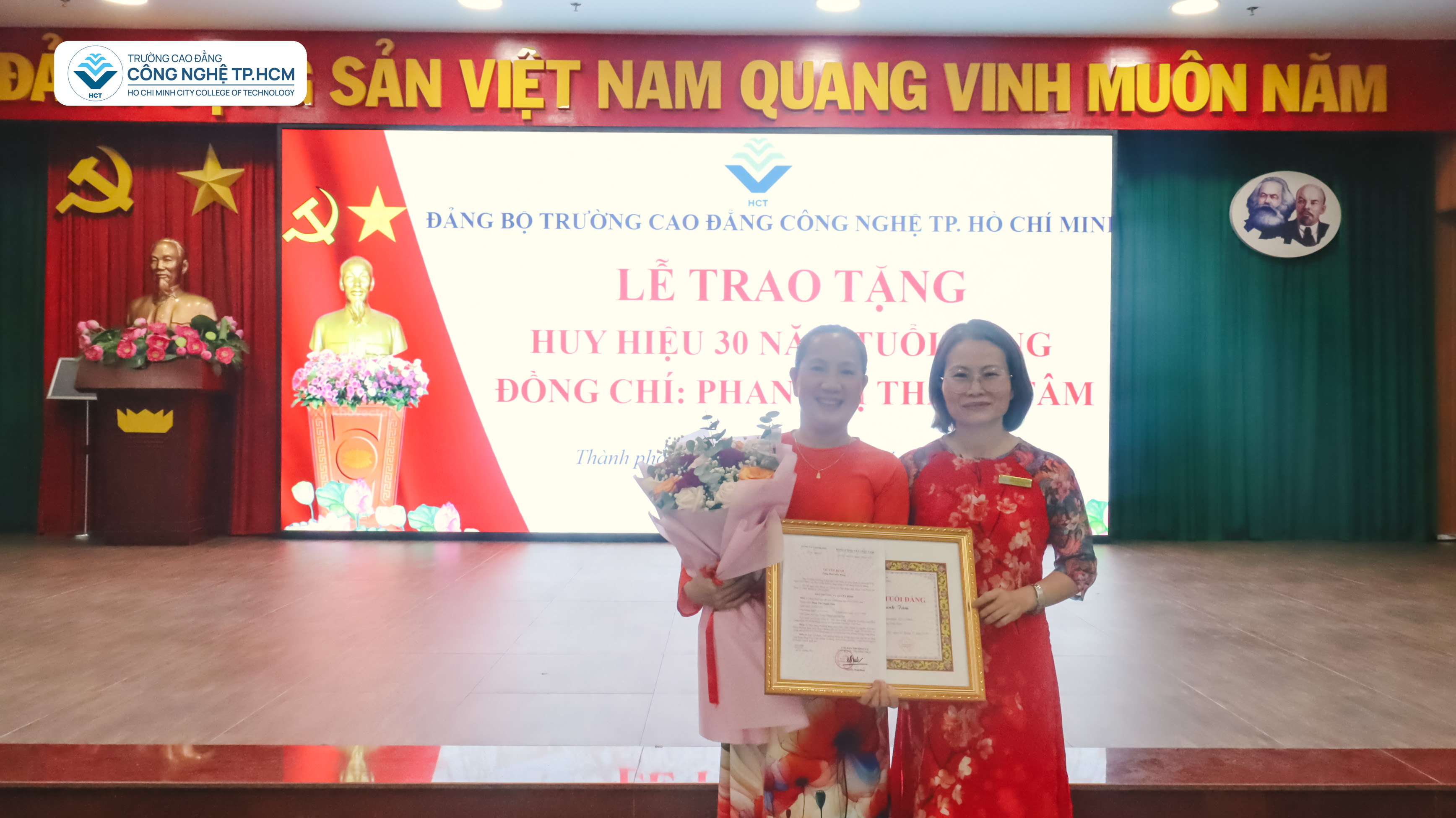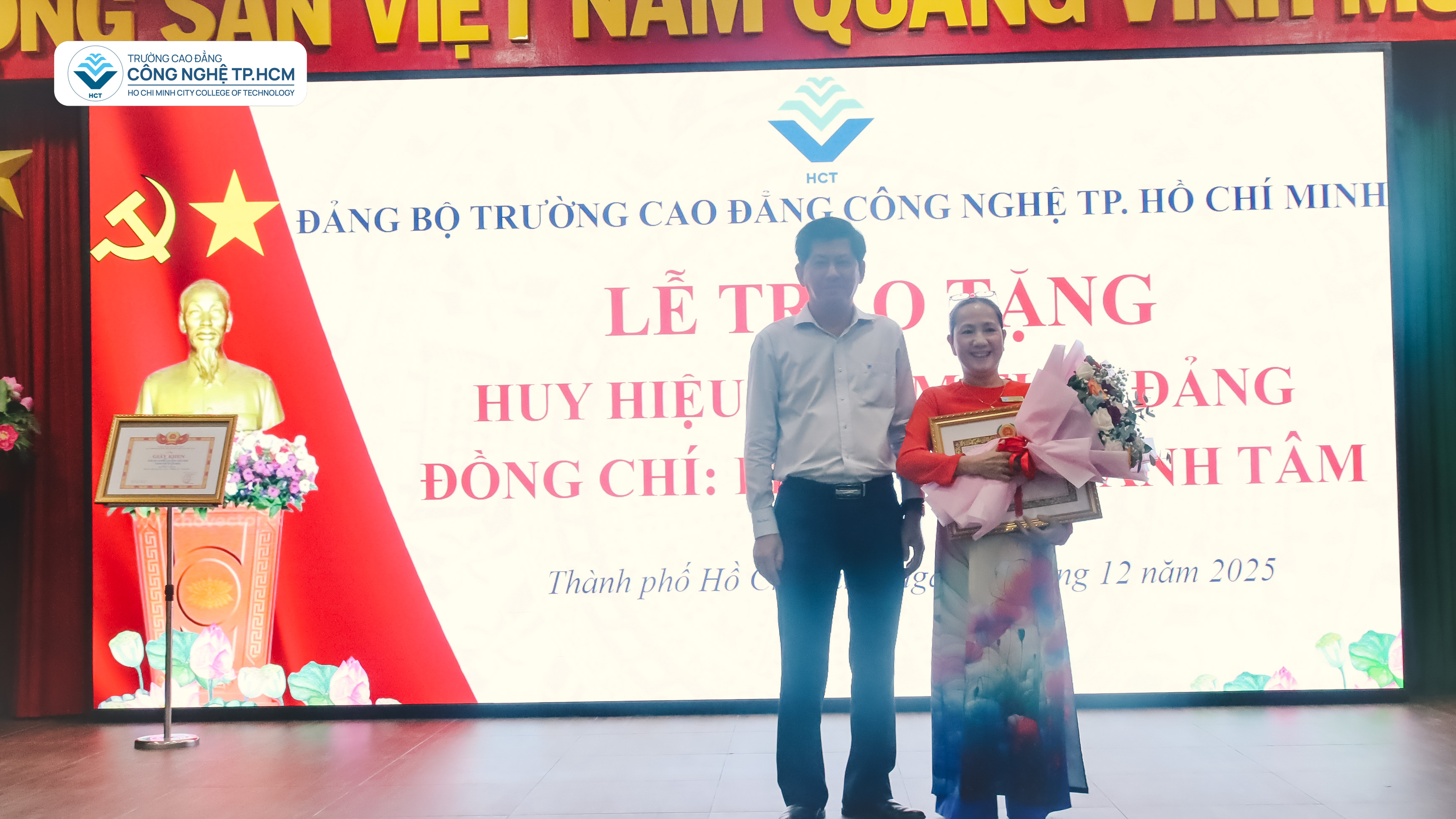 Huy hiệu Đảng là phần thưởng cao quý của Đảng, ghi nhận những tâm huyết, đóng góp, tinh thần trách nhiệm và sự cống hiến trong suốt quá trình công tác, phấn đấu và trưởng thành của các đảng viên. Việc được trao tặng Huy hiệu 30 năm tuổi Đảng không chỉ là niềm vinh dự, tự hào của cá nhân đảng viên, mà còn là niềm vui chung của toàn Đảng bộ Trường Cao đẳng Công nghệ TP. Hồ Chí Minh, đồng thời là nguồn động viên to lớn, góp phần bồi đắp niềm tin, hun đúc lý tưởng và lan tỏa tinh thần cống hiến trong toàn thể đảng viên.
