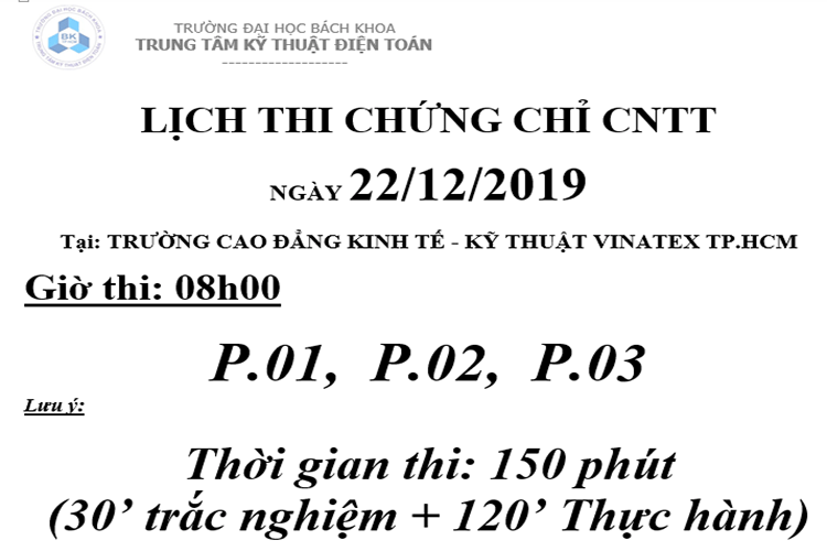 Lịch thi và Danh sách dự thi chứng chỉ Ừng dụng Công nghệ thông tin Cơ bản