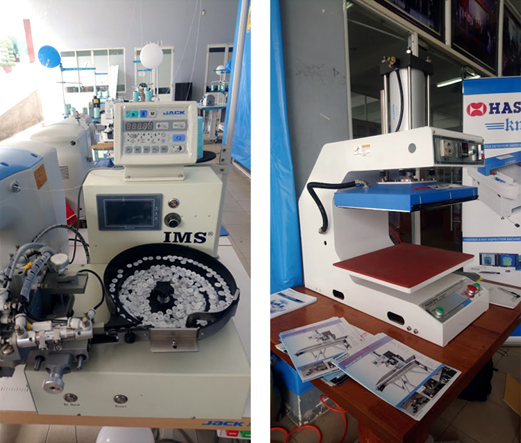 – Cùng 1 số máy tự động và bán tự động do Hashima sản xuất như: máy dò kim, máy ép nhãn, máy cắt vải…