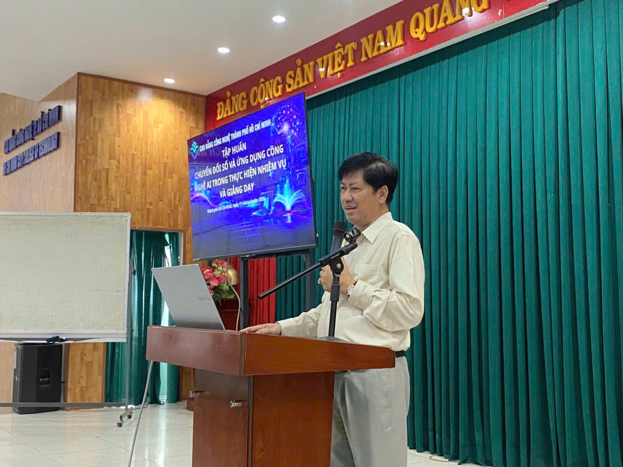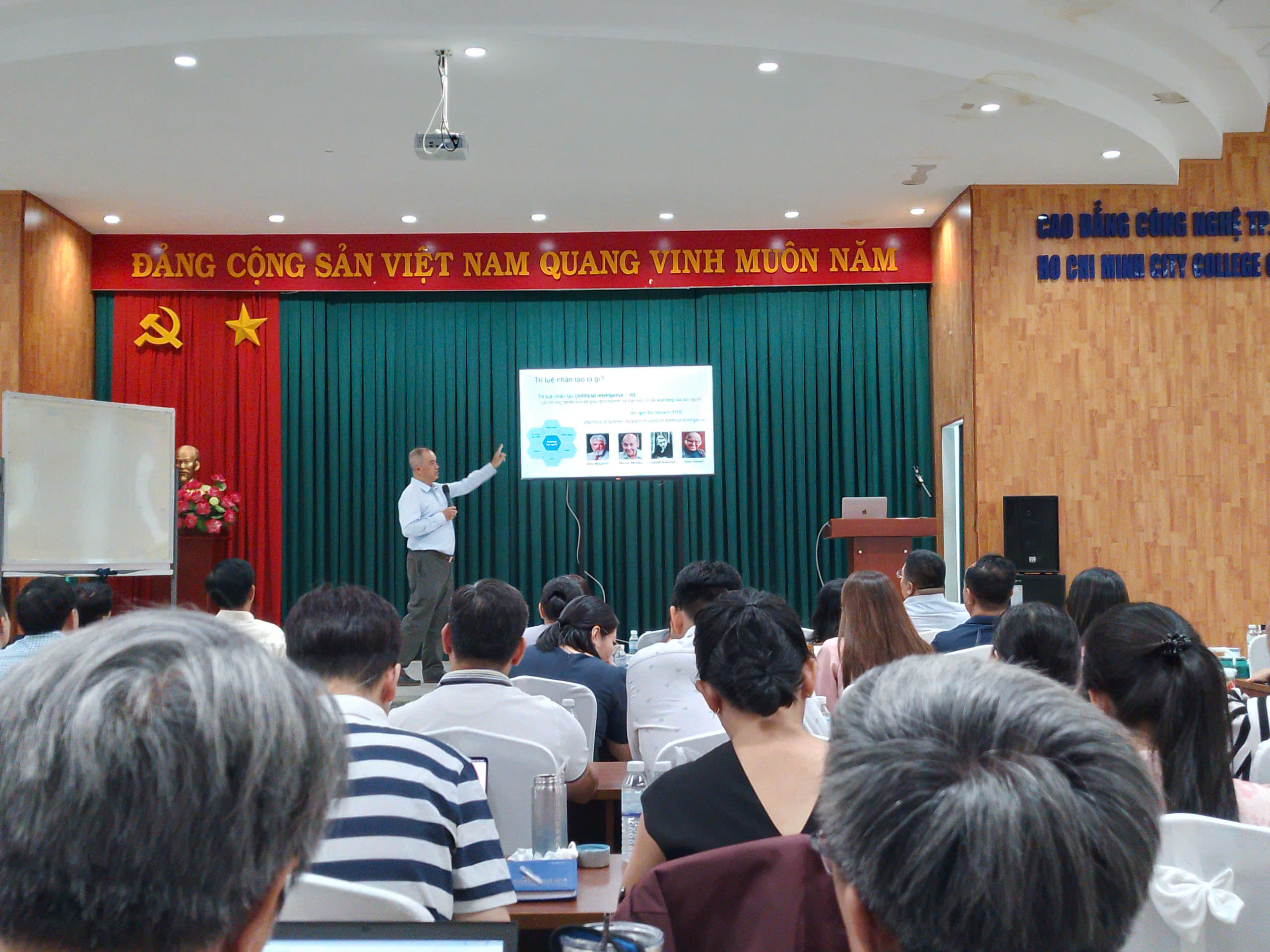 Sáng ngày 11/4, Trường Cao đẳng Công nghệ TP.HCM đã tổ chức buổi tập huấn với chủ đề “Ứng dụng công nghệ thông tin và trí tuệ nhân tạo (AI) trong giảng dạy và thực hiện nhiệm vụ chuyên môn”.