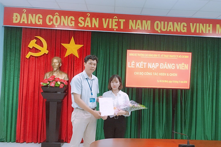 Ngày 15/11/2018, Chi bộ Công tác học sinh, sinh viên & quan hệ doanh nghiệp thuộc Đảng bộ trường Cao đẳng Kinh tế – Kỹ thuật Vinatex TP.Hồ Chí Minh đã tổ chức lễ kết nạp đảng viên cho quần chúng ưu tú là sinh viên Dương Thị Bích Trâm (lớp CĐ16M11). Đây chính là gương mặt tiêu biểu trong các phong trào Đoàn, Hội của trường.
