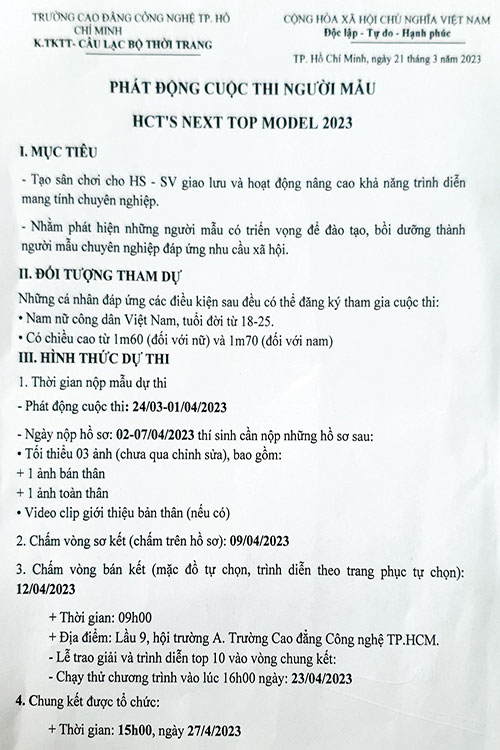 Trường Cao đẳng Công nghệ Tp. HCM, Phát động cuộc thi người mẫu HCT’S NEXT TOP MODEL 2023