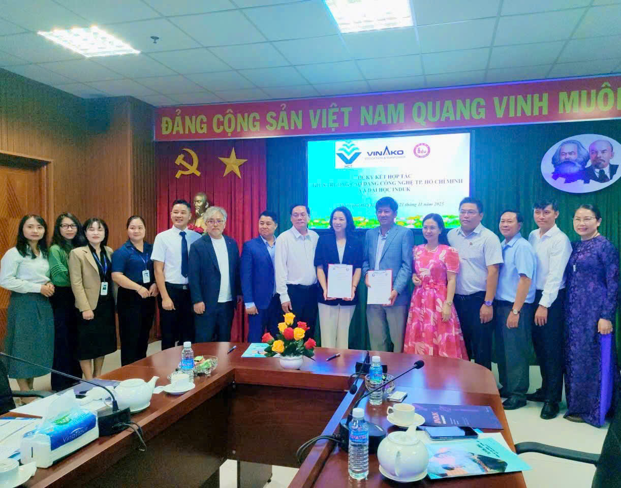 Ngày 21/11/2025, Trường Cao đẳng Công nghệ TP. Hồ Chí Minh đã tổ chức buổi làm việc và ký kết hợp tác với Trường Đại học Induk (Hàn Quốc). Đây là sự kiện quan trọng, đánh dấu bước tiến mới trong hoạt động hợp tác quốc tế, mở ra nhiều cơ hội phát triển trong đào tạo, nghiên cứu khoa học và trao đổi sinh viên.