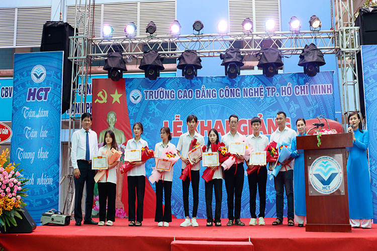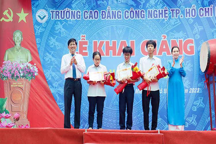 Nhân dịp này, nhà trường đã khen thưởng HSSV hoàn thành tốt nhiệm vụ học tập và rèn luyện trong năm học 2022 – 2023 và tặng thưởng cho 3 sinh viên đạt điểm cao trong xét tuyển đầu vào cao đẳng chính quy năm 2023.