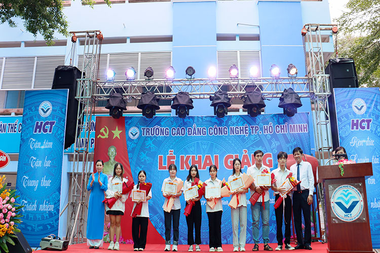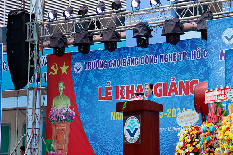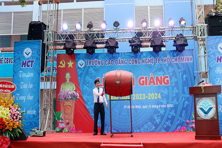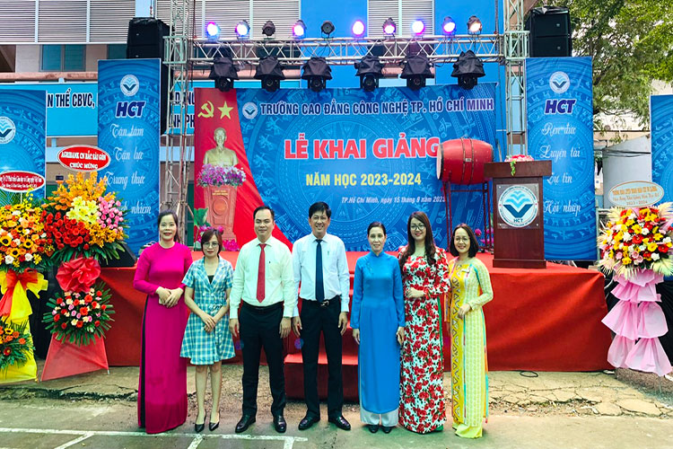 Sáng ngày 15/09/2023, Trường Cao đẳng Công nghệ Thành phố Hồ Chí Minh đã long trọng tổ chức lễ khai giảng năm học 2023 – 2024. Tham dự lễ khai giảng, Về phía khách mời có đại diện các doanh nghiệp Bà Nguyễn Thị Huệ – Viện trưởng viện Giáo dục Phát triển Quốc tế Việt, Bà Phan Thị Hậu – Trưởng phòng tuyển sinh Công ty cổ phần nhân lực MD Group, Bà Nguyễn Thuỳ Dung – Trưởng phòng tuyển sinh Công ty TNHH DWN Việt Nam, Ông Hoàng Minh Tuấn – Tổng giám đốc Công ty cổ phần Nhân lực Quốc tế Hoàng Minh, Bà Nguyễn Thị Mỹ Trang – Trưởng phòng đào tạo Công ty cổ phần Trường huấn luyện Doanh nhân CEO Việt Nam Glbal. Về phía nhà trường có sự hiện diện của Thầy Nguyễn Ngọc Hiển – Bí thư Đảng ủy, Hiệu trưởng nhà trường; Cô Phan Thị Hải Vân – Ủy viên Ban Thường vụ Đảng ủy, Phó Hiệu trưởng nhà trường; cùng toàn thể cán bộ, giảng viên, công nhân viên, đại diện HSSV cơ sở 2 và toàn thể HSSV cơ sở 1 của trường.
