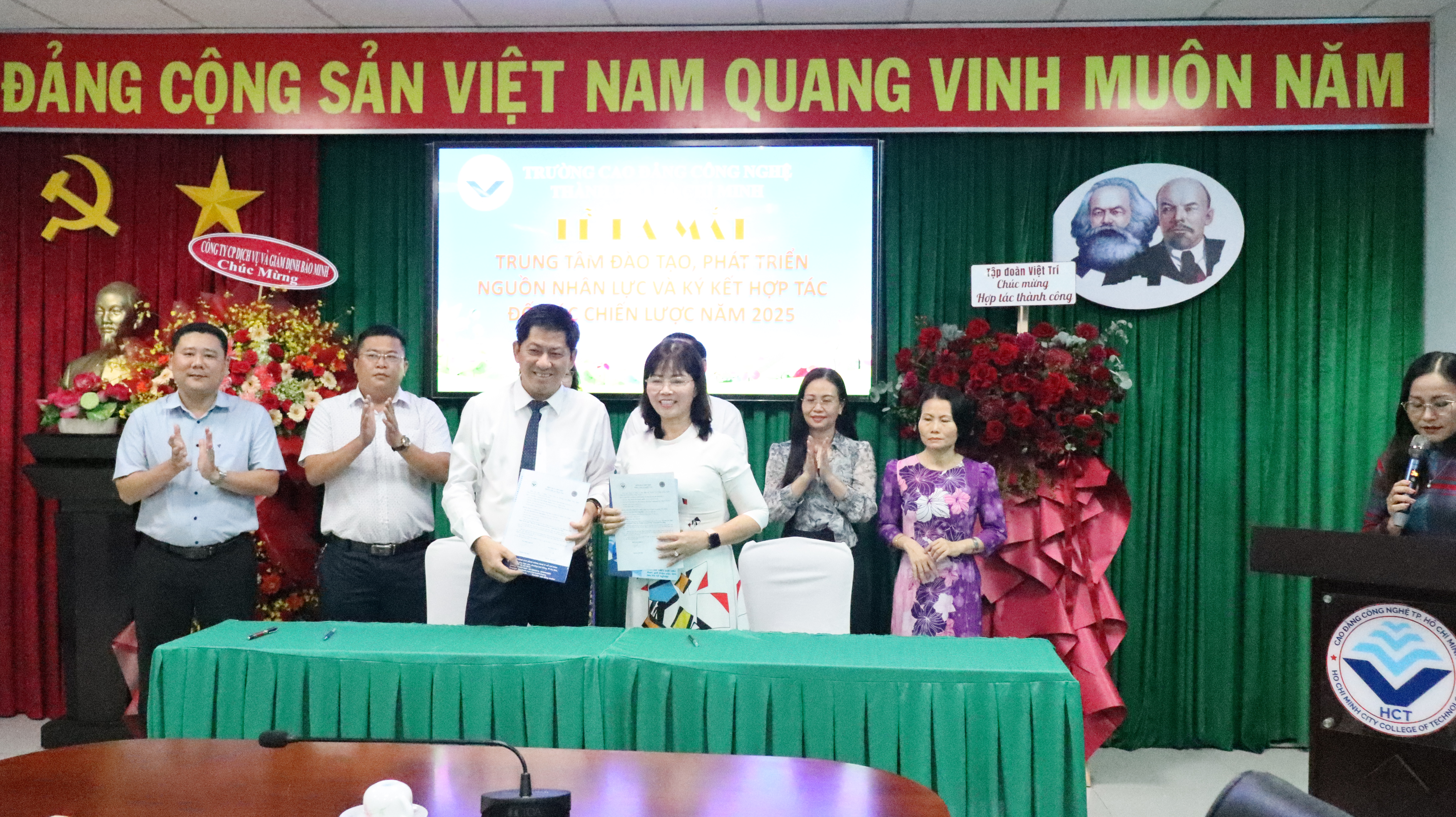 Ngày 15/03/2025, Trường Cao đẳng Công nghệ TP.HCM tổ chức Lễ ra mắt TRUNG TÂM ĐÀO TÀO PHÁT TRIỂN NGUỒN NHÂN LỰC, đồng thời Nhà trường ký kết hợp tác Tổ chức các hoạt động Tuyển sinh – Đào tạo và cung ứng nguồn nhân lực – Các hoạt động chuyển đổi số – Tuyển dụng nguồn nhân lực sau khi tốt nghiệp – Đào tạo và định hướng Du học và xuất khẩu lao động với các Công ty: