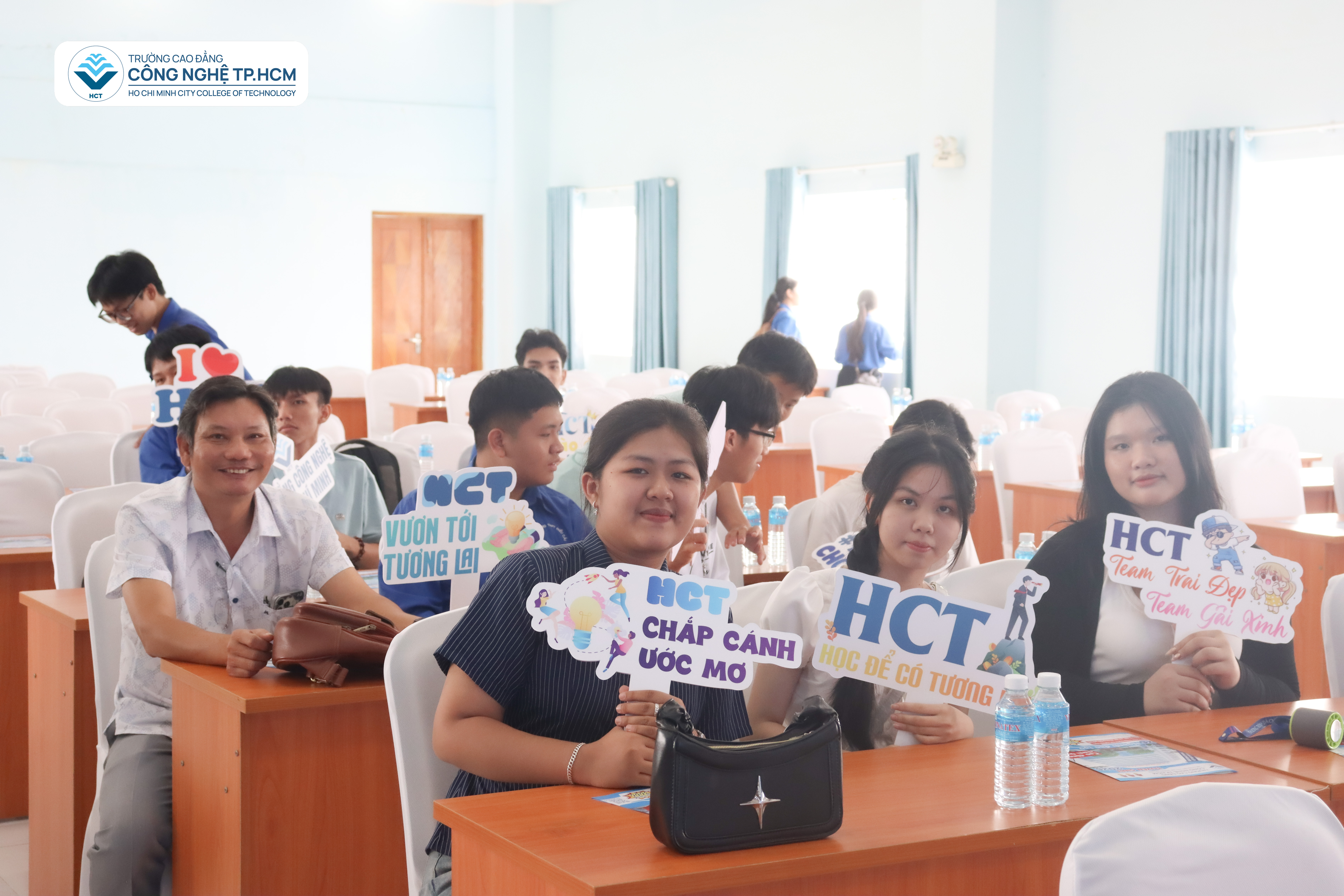 Buổi gặp gỡ diễn ra trong không khí vui tươi, cởi mở, tạo điều kiện để các bạn học sinh trực tiếp tham quan khuôn viên trường, phòng học, phòng thực hành và tìm hiểu rõ hơn về môi trường học tập tại Trường Cao đẳng Công nghệ TP.HCM.