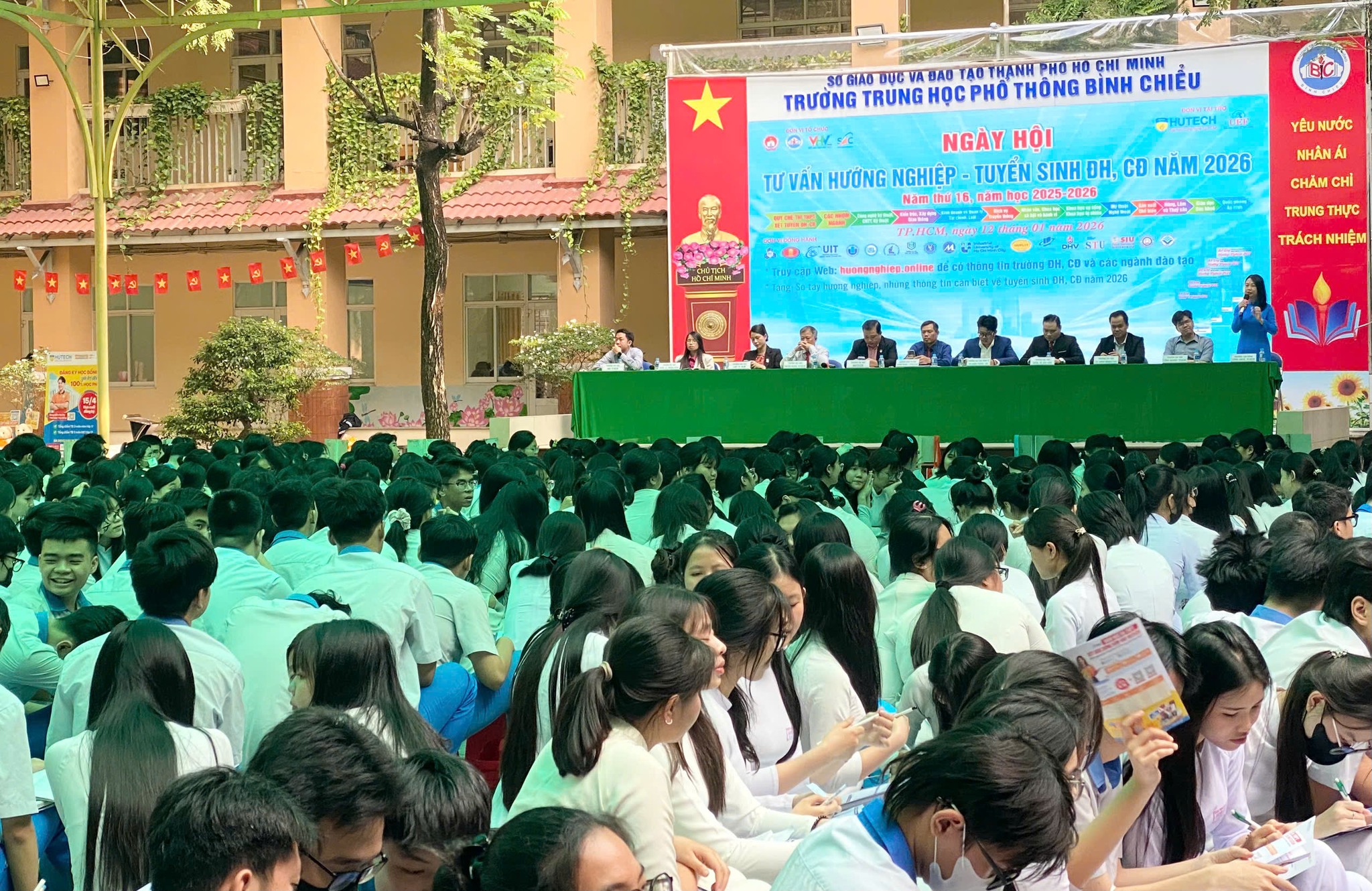 Nhằm đồng hành cùng học sinh trong giai đoạn quan trọng trước kỳ thi tốt nghiệp THPT và lựa chọn hướng đi tương lai, Trường Cao đẳng Công nghệ TP.HCM (HCT) đã đồng hành cùng chương trình tư vấn hướng nghiệp cho học sinh khối 12 tại Trường THPT Bình Chiểu.
