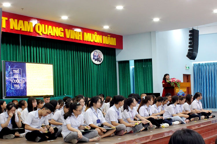 Thực hiện Kế hoạch hoạt động ngoại khóa và nhiệm vụ năm học 2019 – 2020, Nhà trường xây dựng và triển khai kế hoạch tổ chức hội thi Rung chuông vàng năm 2020 với chủ đề “Biển đảo quê hương” dành cho sinh viên trong toàn trường vào ngày 22/07/2020. Vòng chung kết hội thi Rung chuông vàng năm 2020 diễn ra tại Hội trường A, đến dự Hội thi có quý thầy cô trong Ban Giám hiệu; quý thầy cô là trưởng, phó các đơn vị, các giảng viên và hơn 300 sinh viên đại diện cho các lớp tham dự và cổ động cho hội thi.